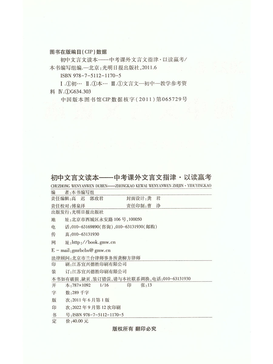 2023届新版初中文言文读本 中考课外文言文指津 以读赢考 光明日报出版社