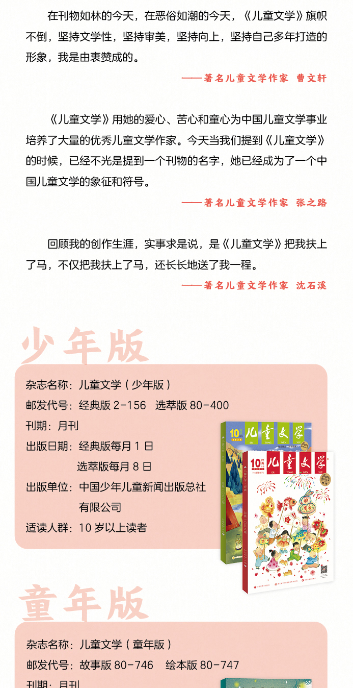 【超妈专属】儿童文学,儿童版+少年版杂志经典26年起订 1年共12期 少年双本套中小学生课外阅读中国