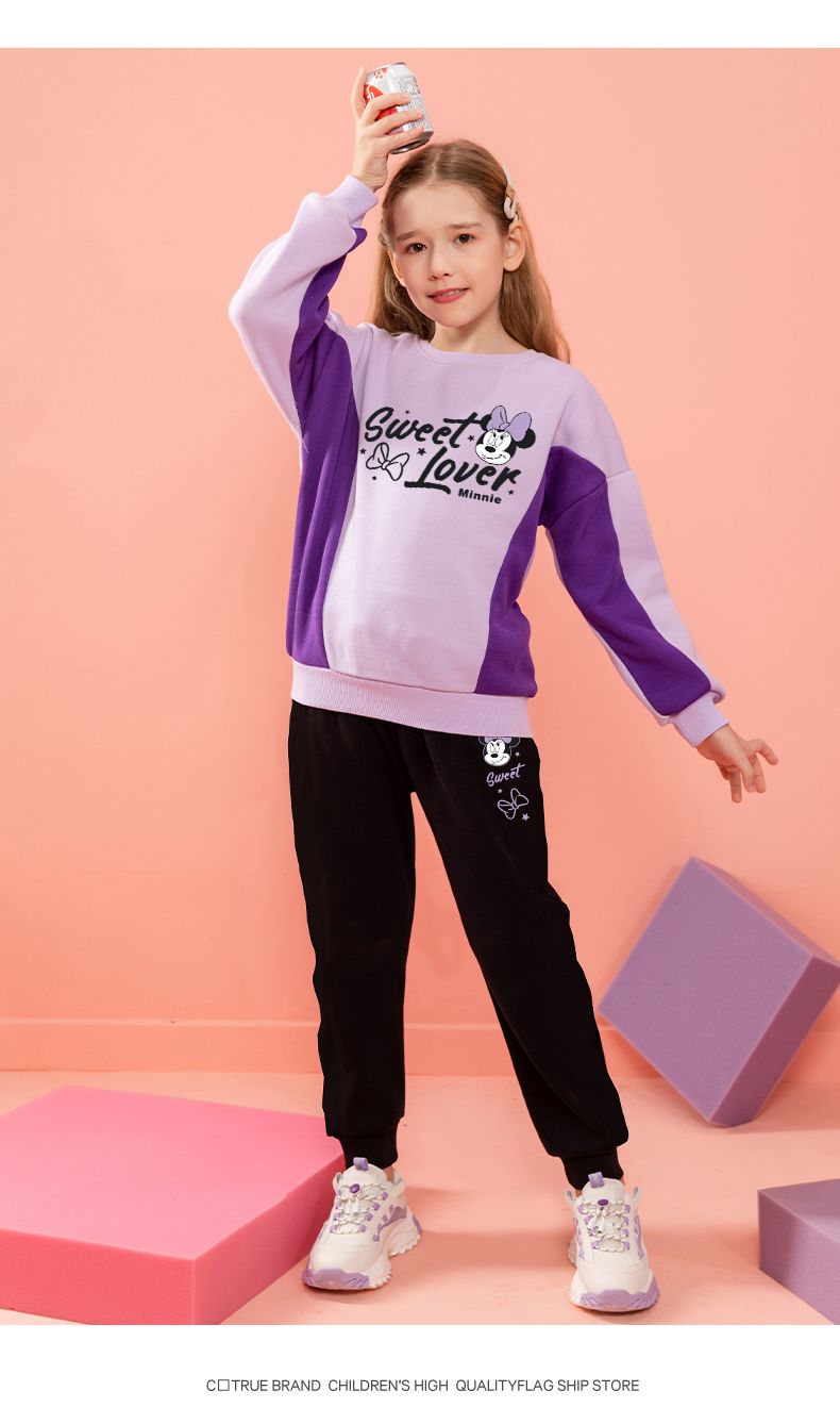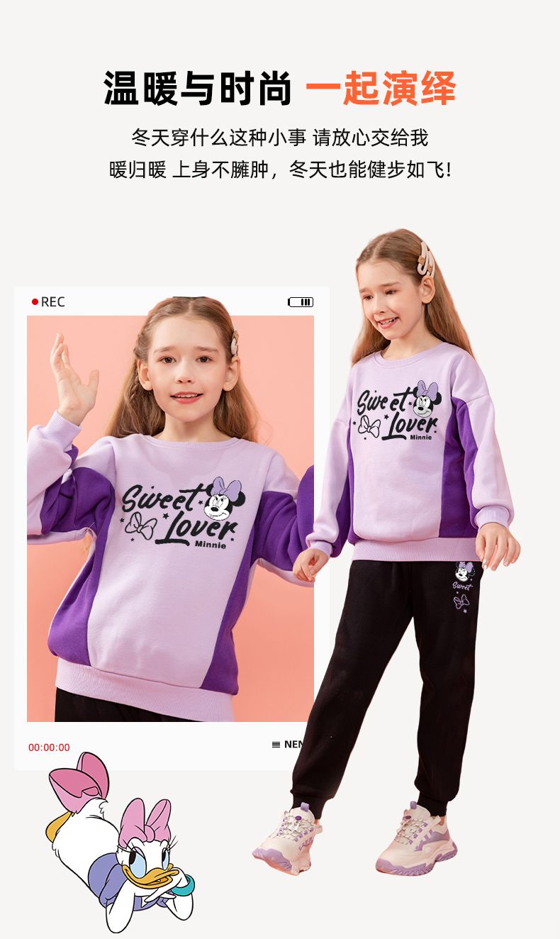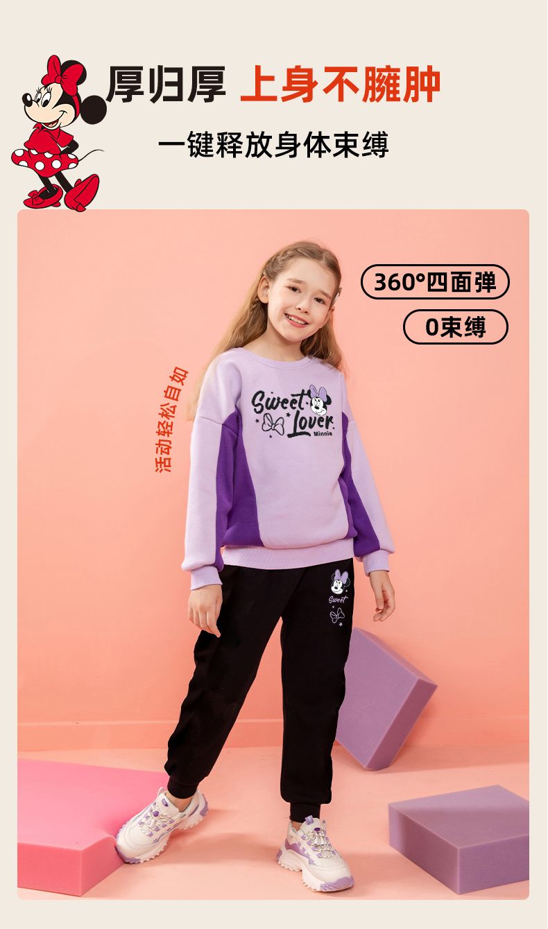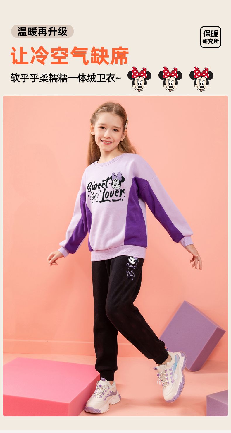 迪士尼女童冬装新款洋气加绒厚儿童套装女孩女宝冬款打底衫霸气潮