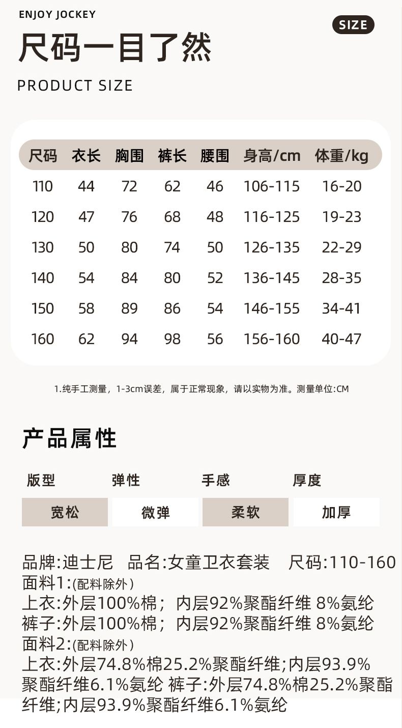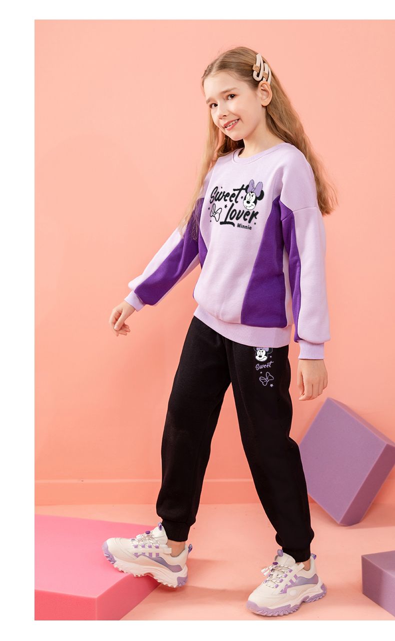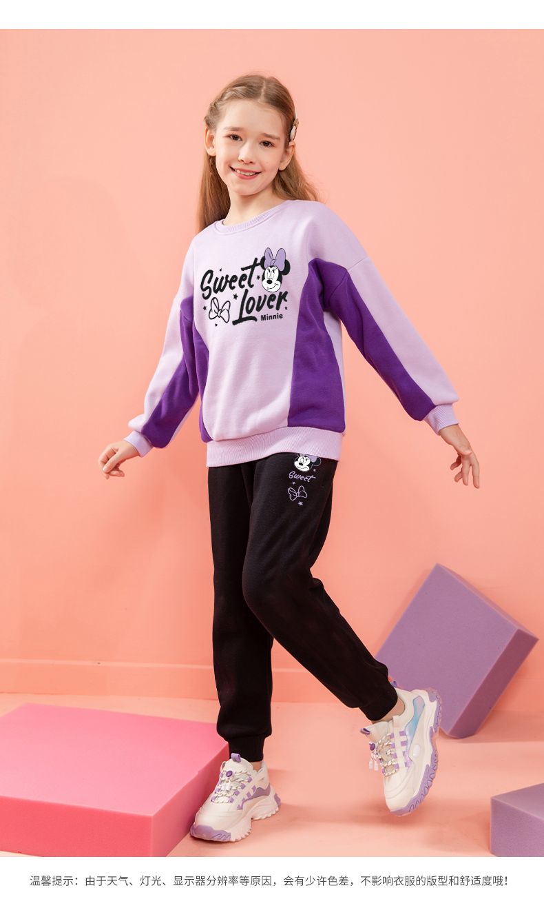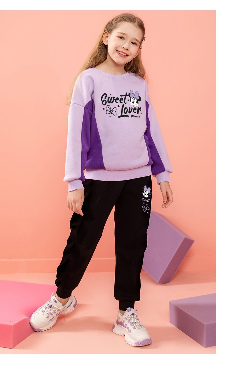 迪士尼女童冬装新款洋气加绒厚儿童套装女孩女宝冬款打底衫霸气潮