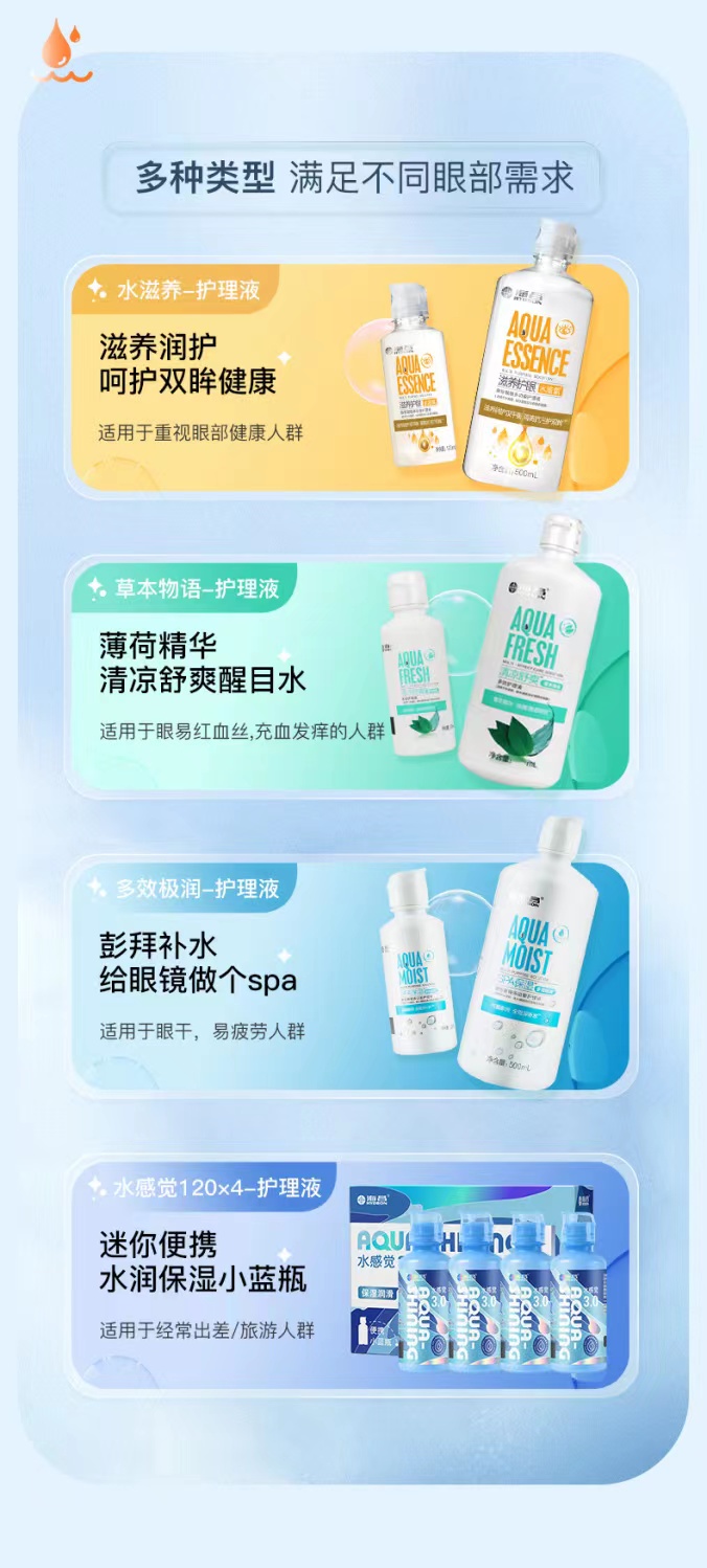 海昌水亮洁隐形眼镜护理液120ml 360ml 长效洁净强力清洁