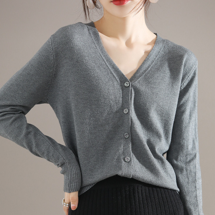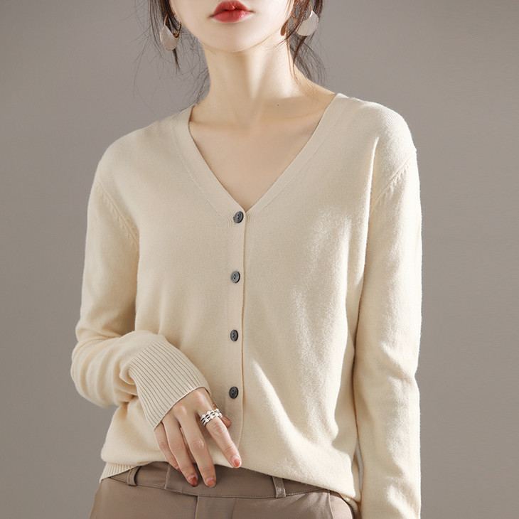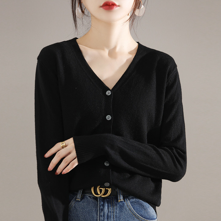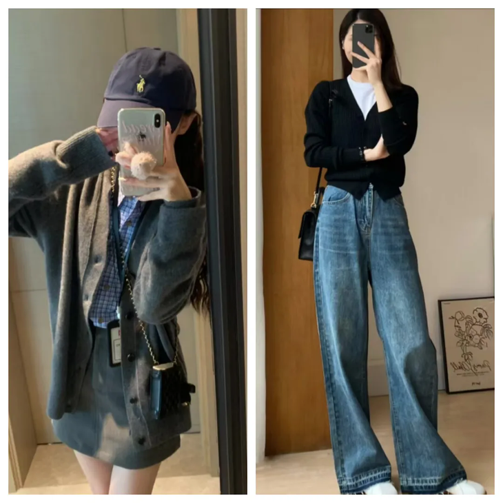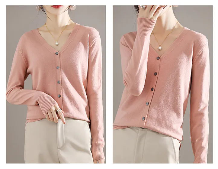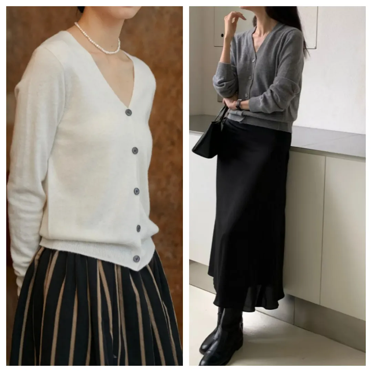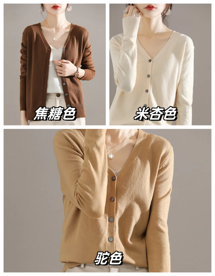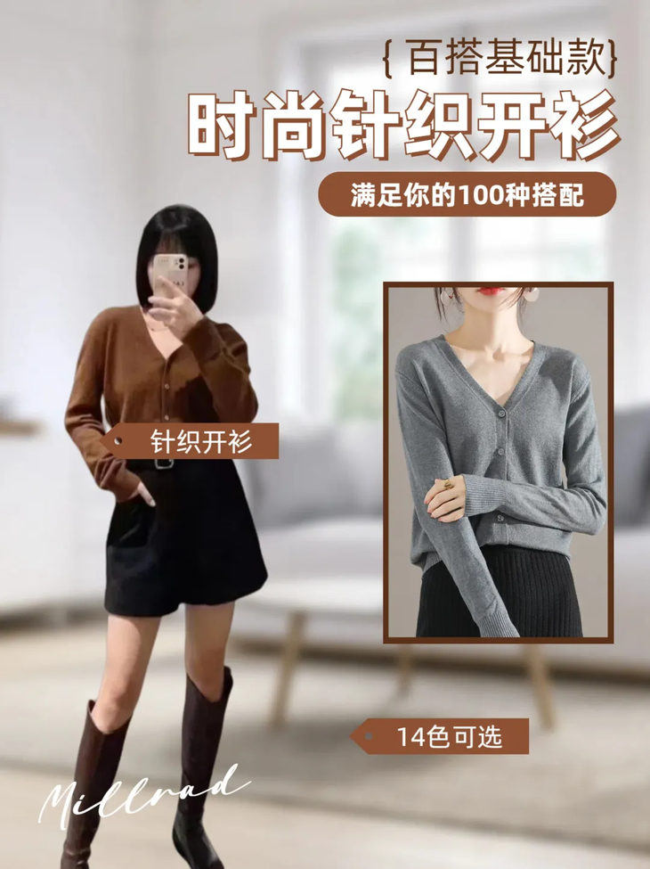 我们都给姐妹们找好了! 对比了十几款时下流行的版型 面料质量经得起测试 还很百搭,喏,就是这件V领针织开衫▼ 属于谁上身谁好看的那种 百搭好显气质,随便拍拍都出片