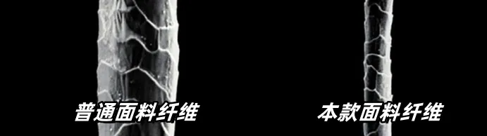 虽然是聚酯纤维面料 但与普通面料不同 它的纤维更细密、更光洁。 纤维表面鳞片顺滑、整齐,倒毛少 摸起来的手感触感温柔细腻 所以贴肤穿一点都不会扎皮肤。