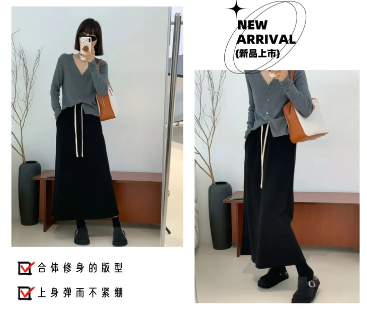 也可以搭配长裙、短裙 透露出一股温柔知性的女人气质 亲测这样穿ju出片!