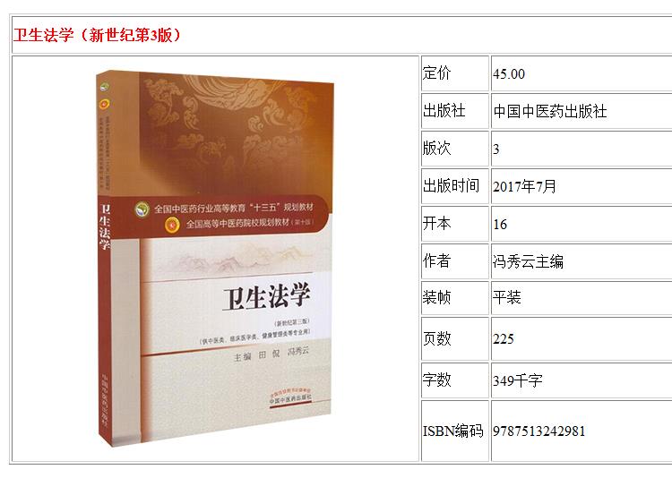 卫生法学 新世纪第三3版 第十10版 全国高等中医药院校规划教材十三五 冯秀云 田侃主编 供中医类 临床医学类 健康管理类等专业用