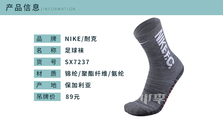 NIKE耐克FC成人足球运动短袜男加厚毛巾底SX7237