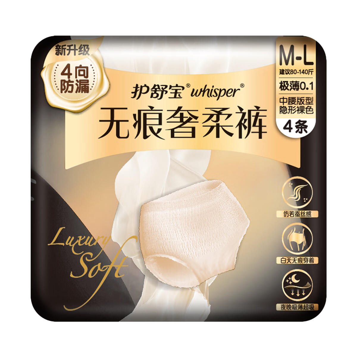 护舒宝无痕奢柔安睡裤M-L码裤型卫生巾4片