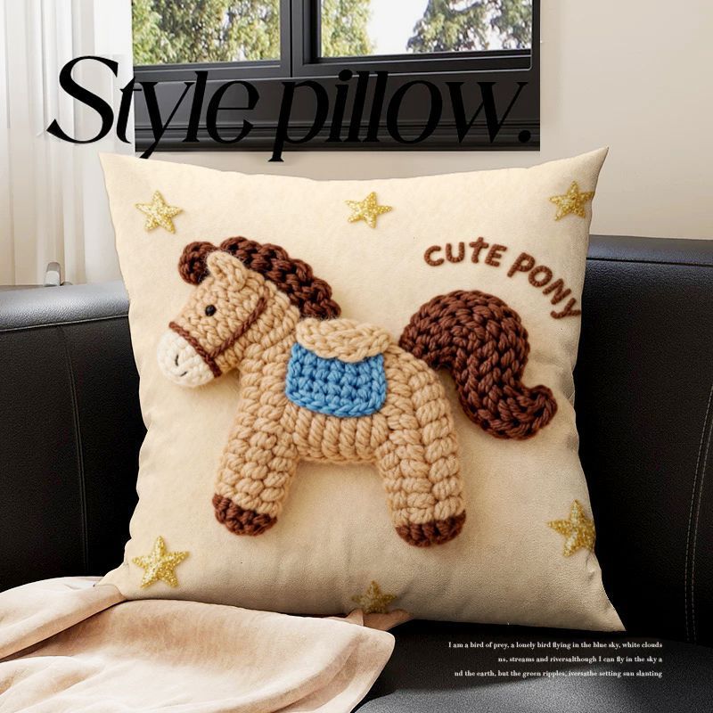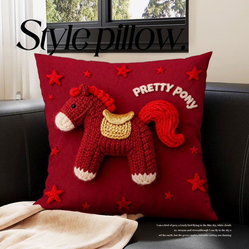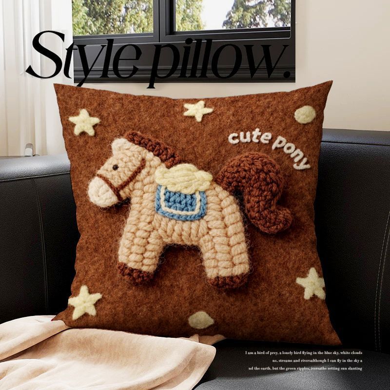 【柔软亲肤舒适❗️萌趣可爱小马】毛线小马平面印花抱枕床头靠垫居家靠枕办公室午趴睡枕沙发枕头。jc