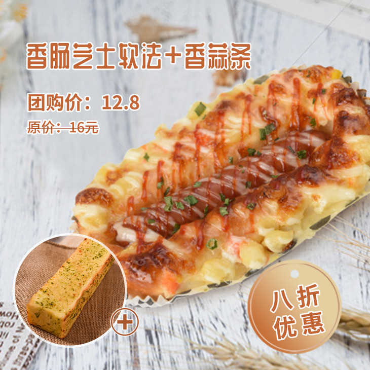 【限时8折】香肠芝士软法+香蒜条
