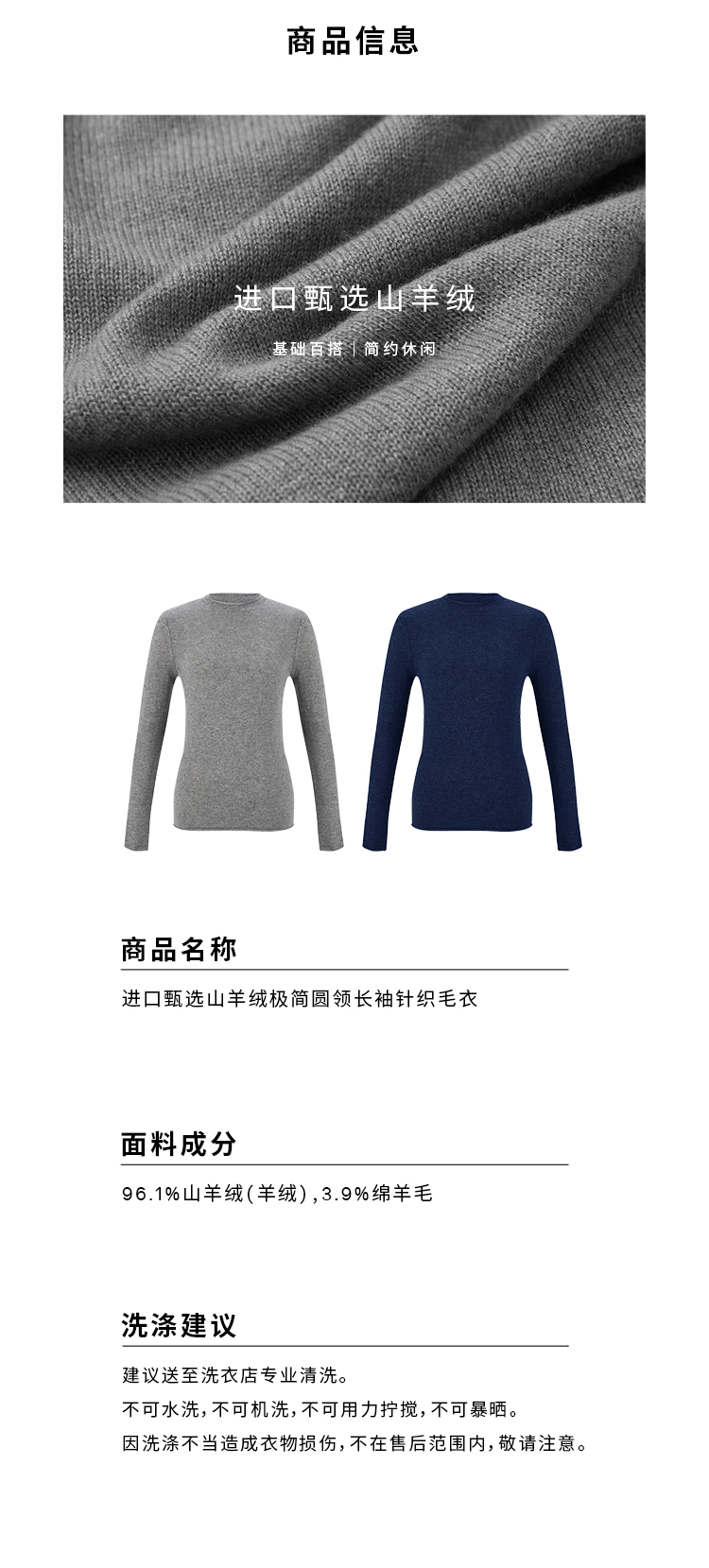 HIDEMI 进口甄选山羊绒极简圆领长袖针织毛衣