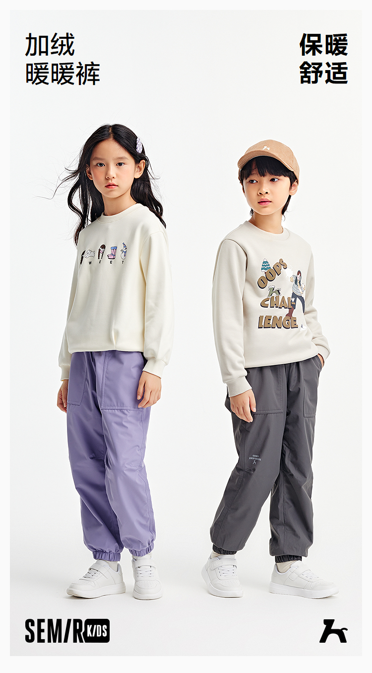 森马儿童长裤宽松束脚裤冬加绒保暖棉裤男童女童裤子休闲百搭