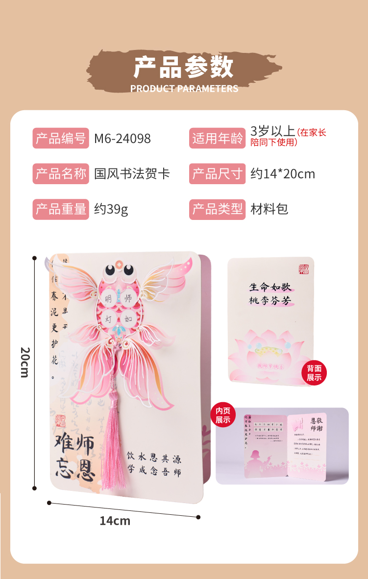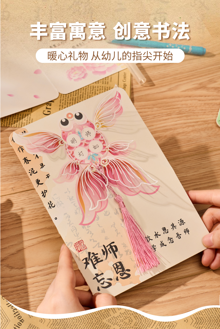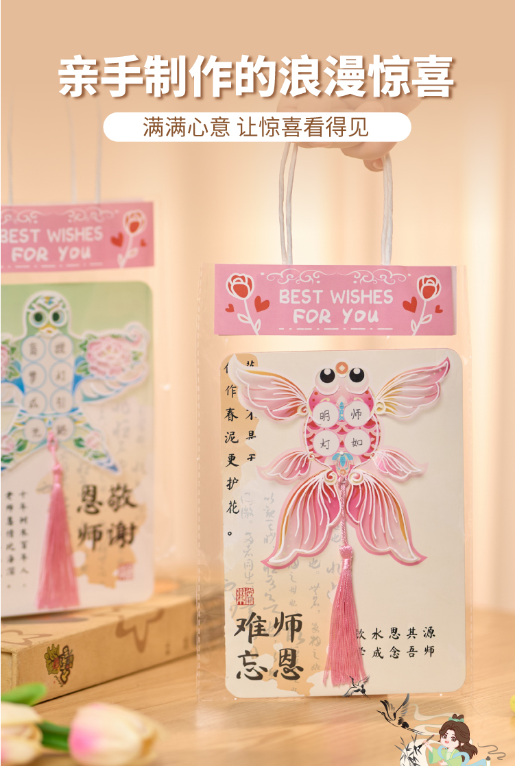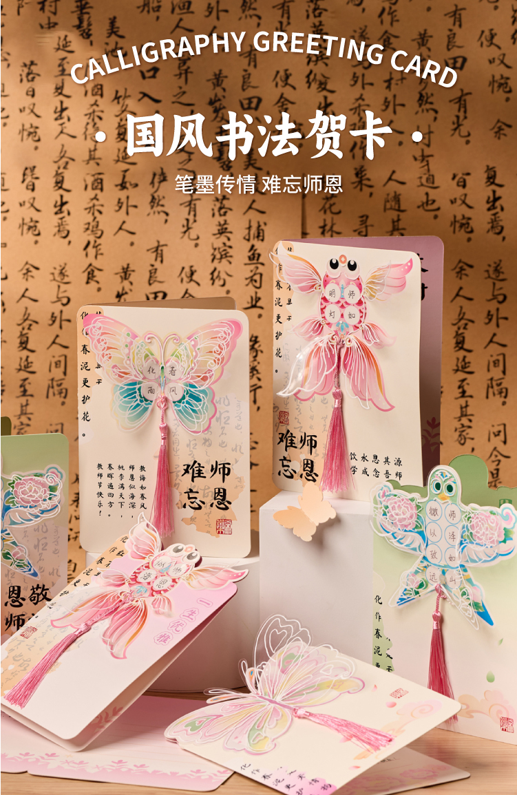 【供】2025新款教师节国风书法贺卡手工diy儿童制作材料花束卡片送老师