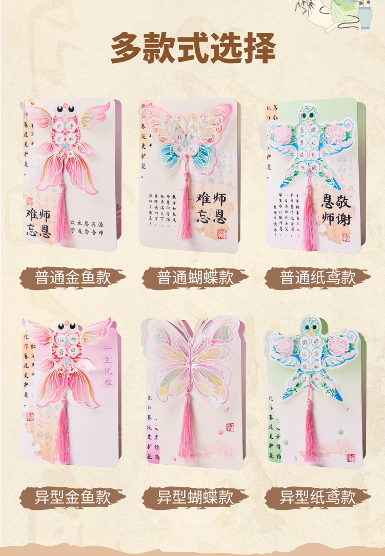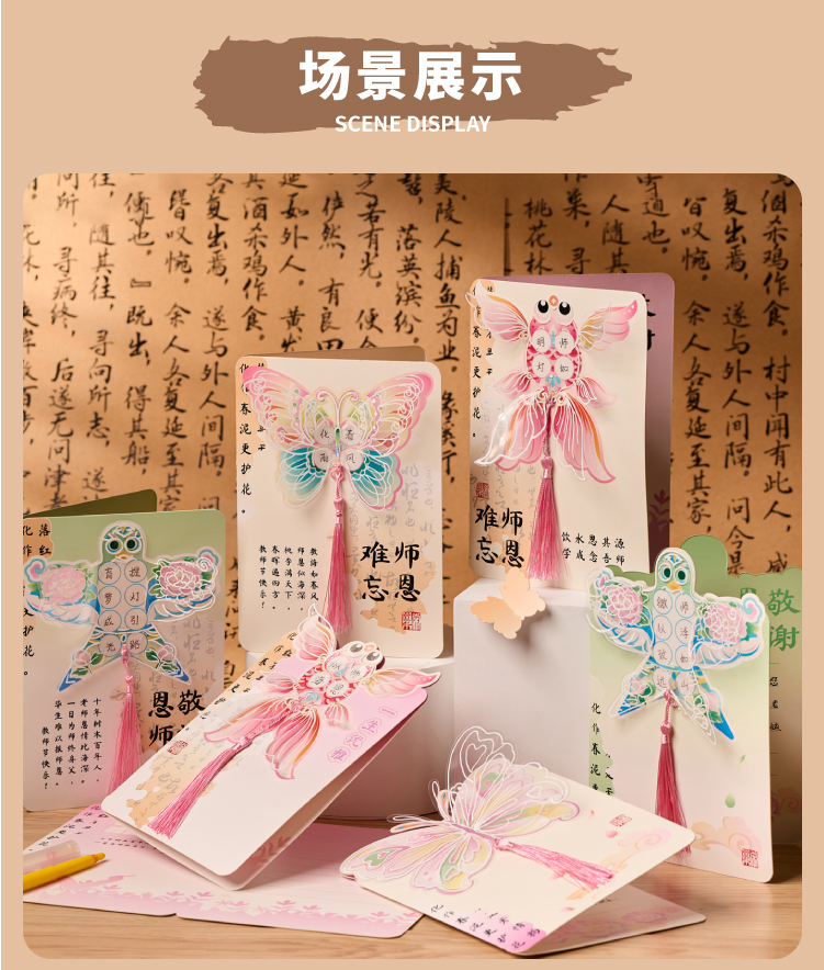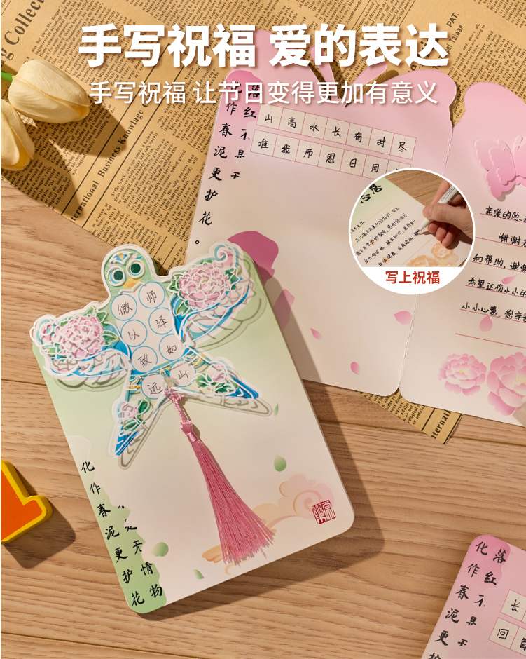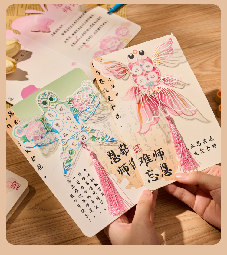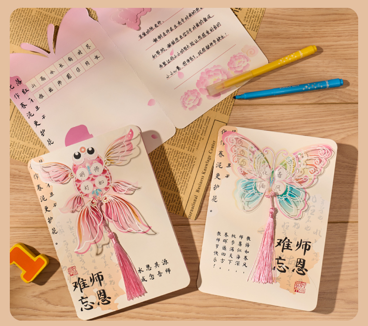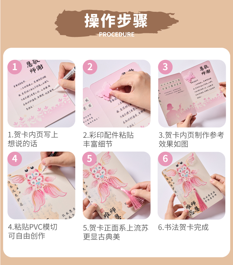 【供】2025新款教师节国风书法贺卡手工diy儿童制作材料花束卡片送老师