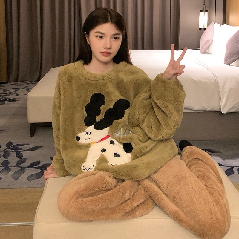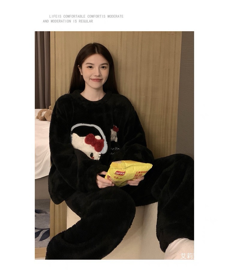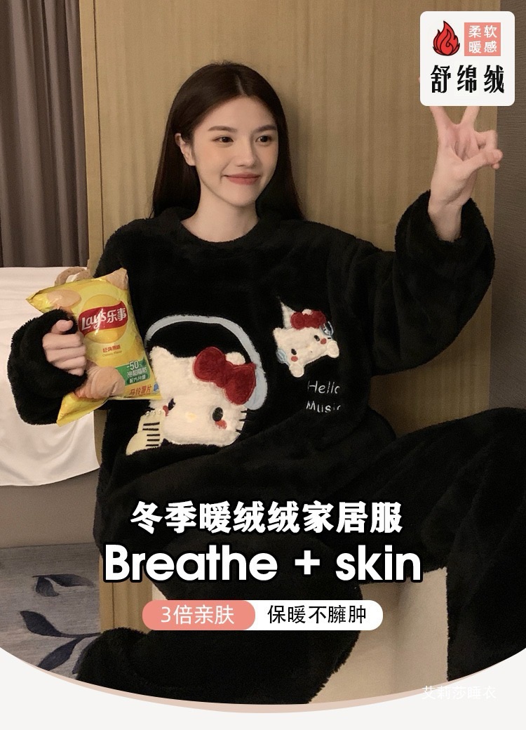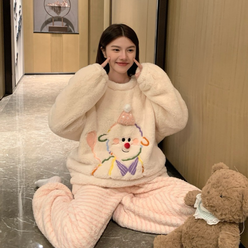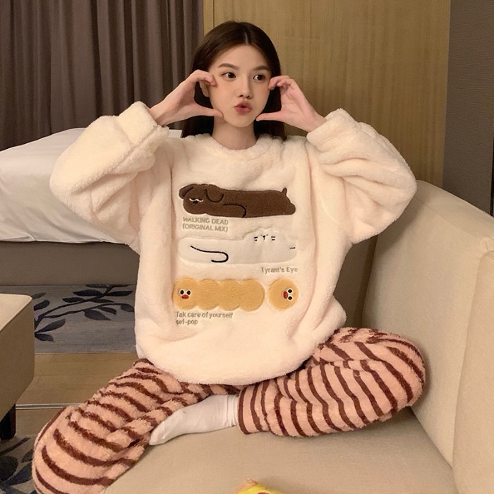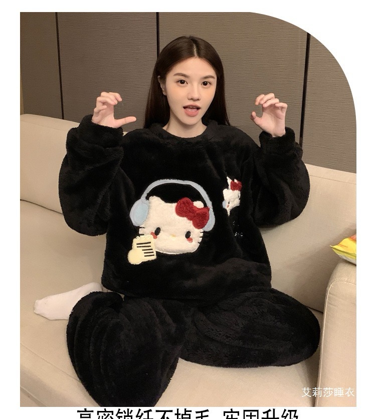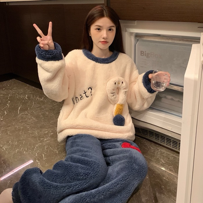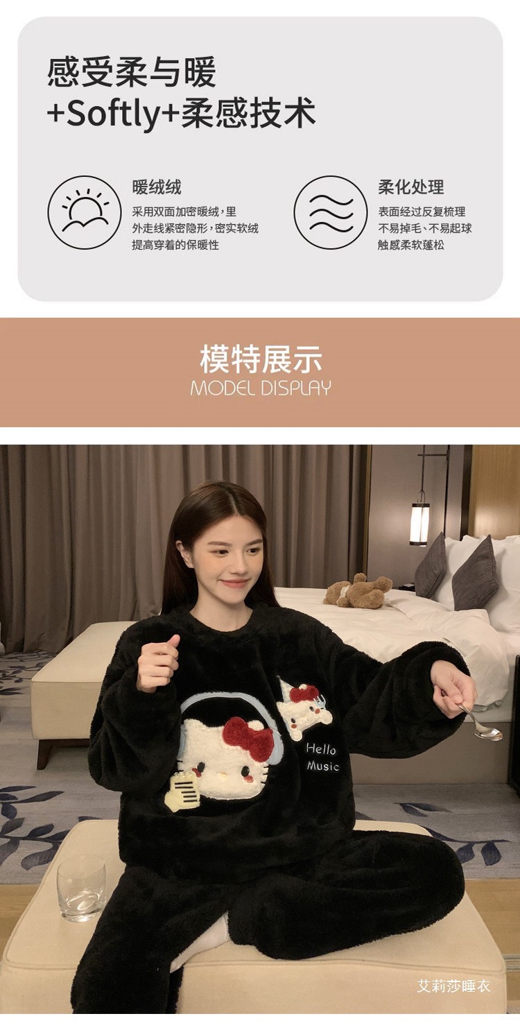 买手优选长毛绒圆领套头少女卡通加绒加厚家居服套装168293097