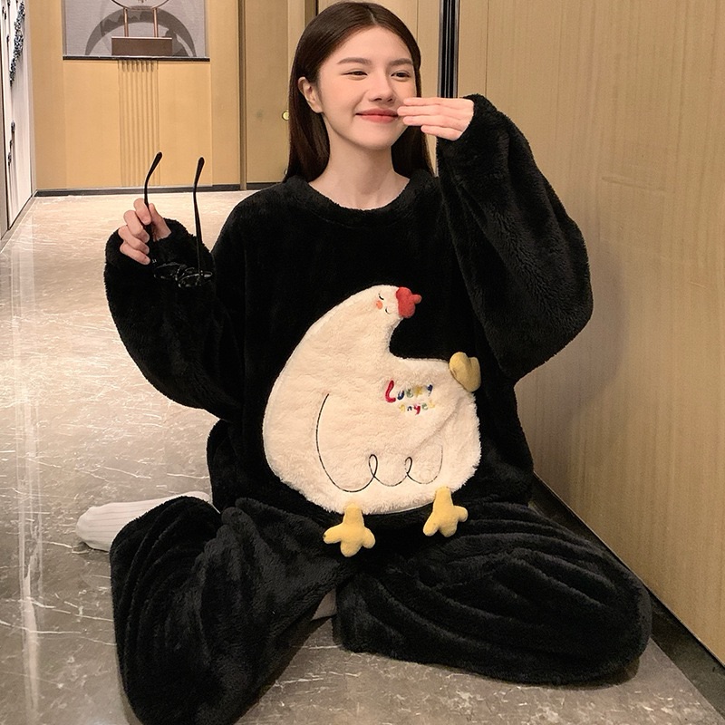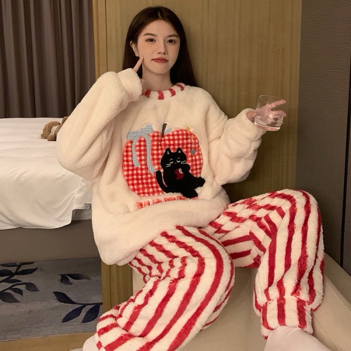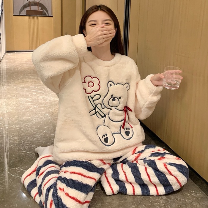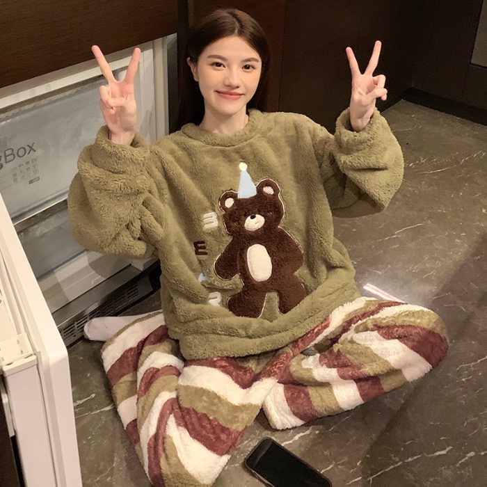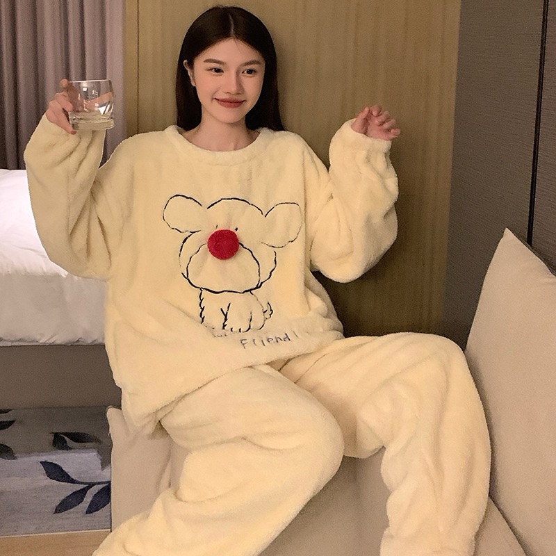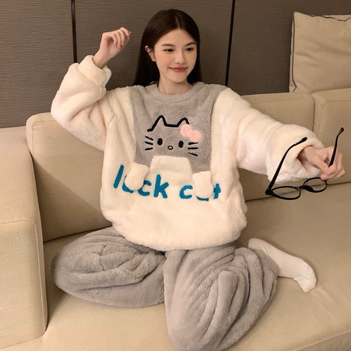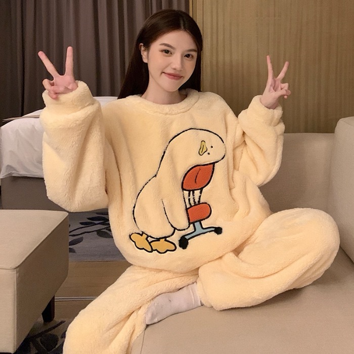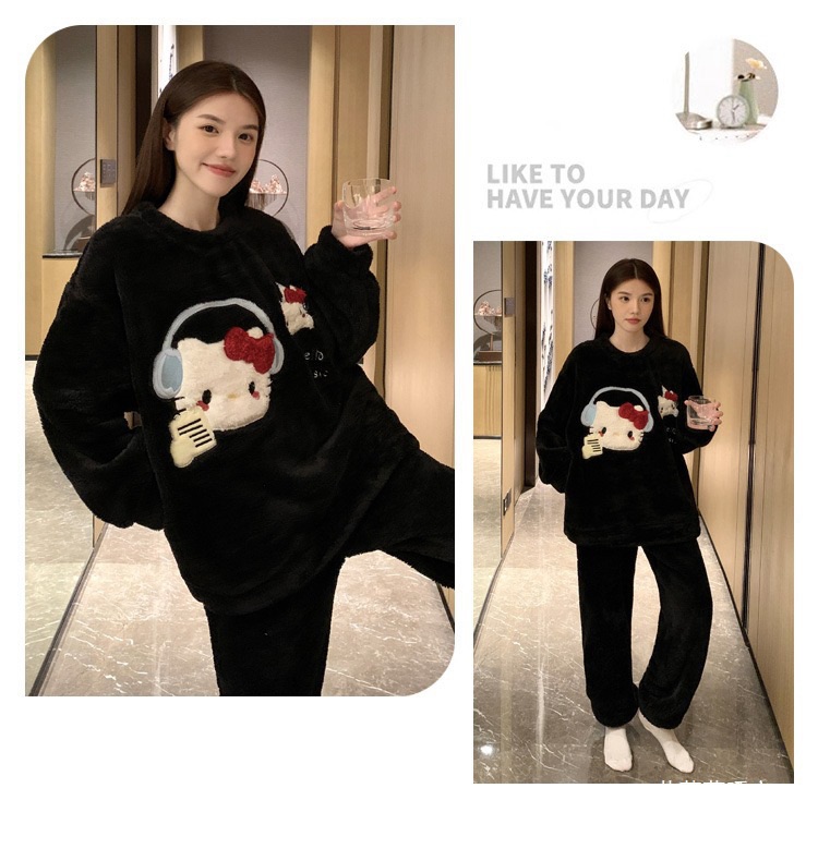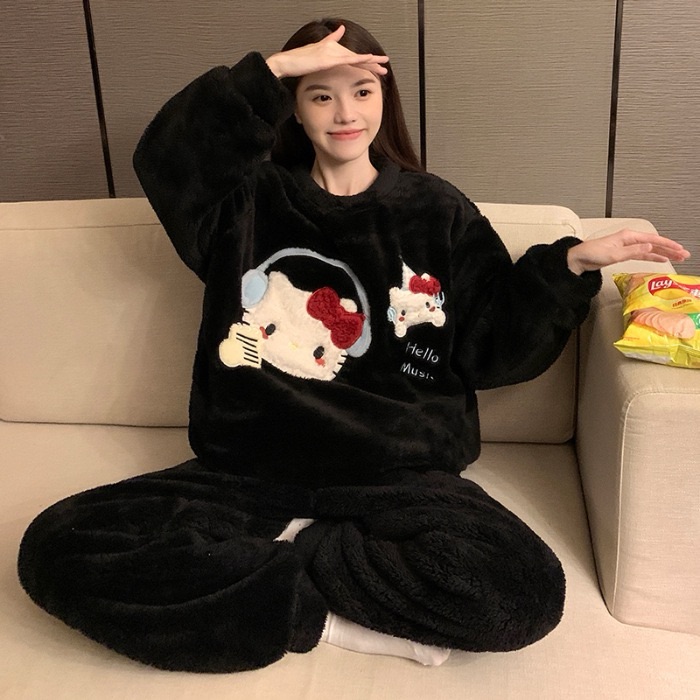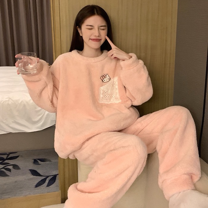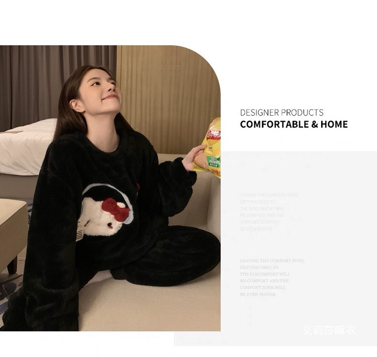 买手优选长毛绒圆领套头少女卡通加绒加厚家居服套装168293097
