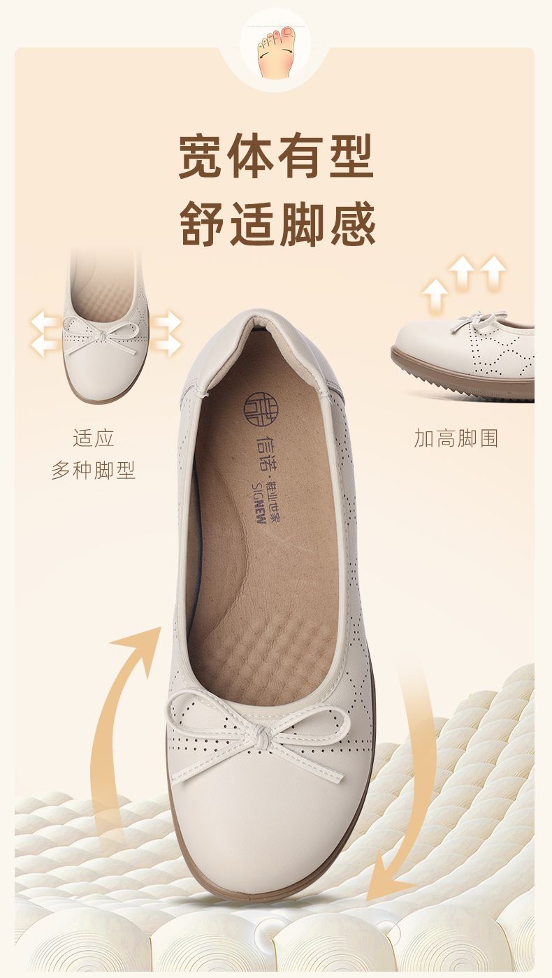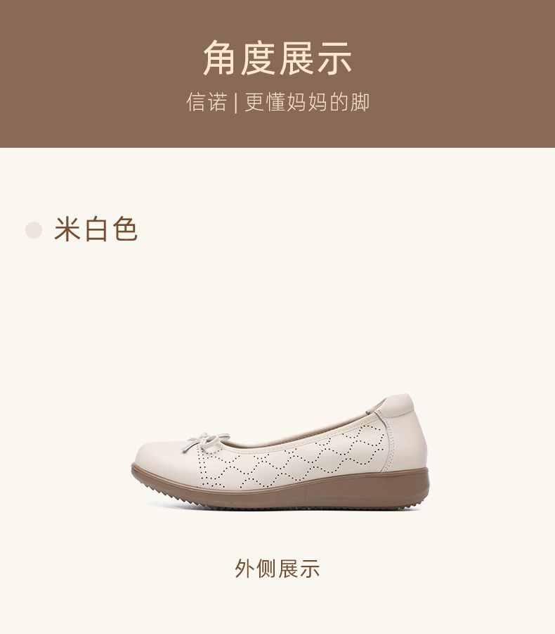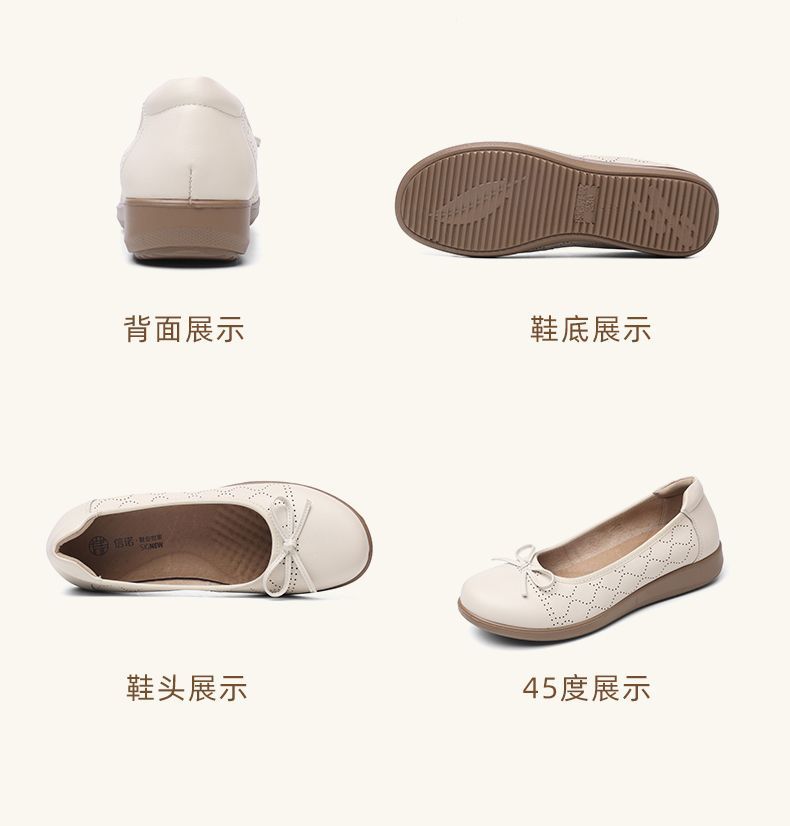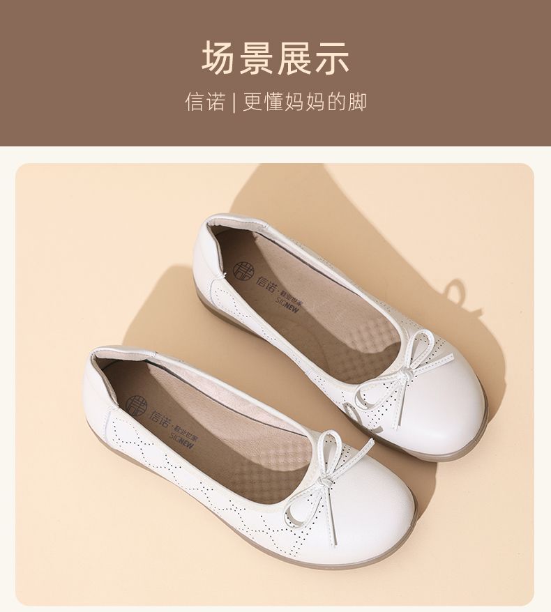 信诺真皮女鞋新款妈妈舒适单鞋软底平底脚蹬休闲中老年豆豆皮鞋子5C9811-63
