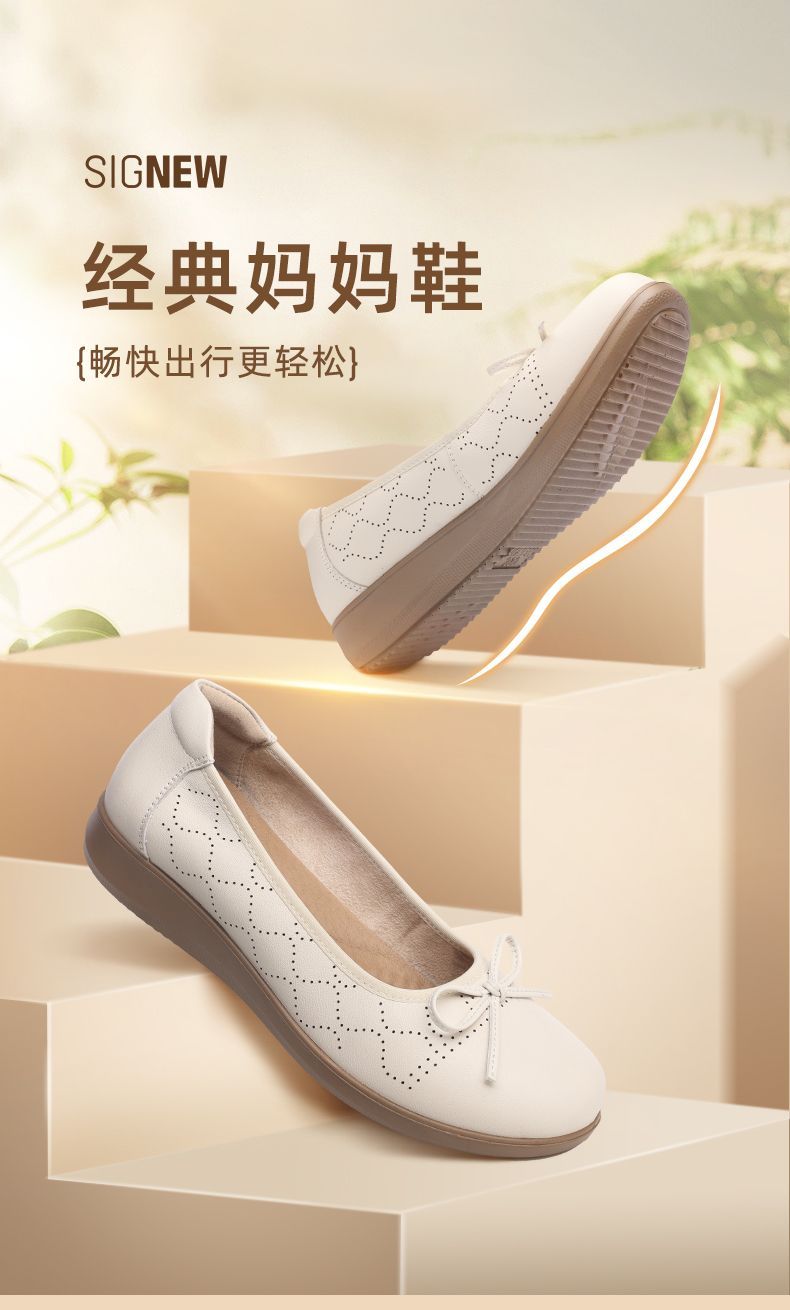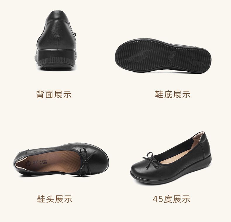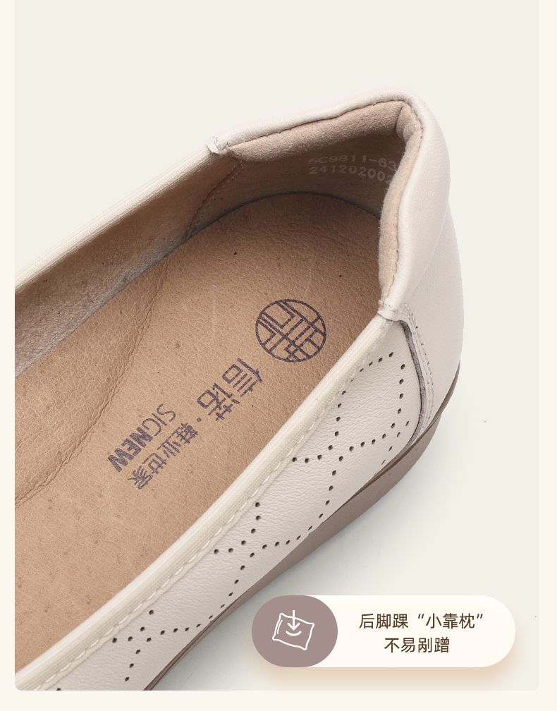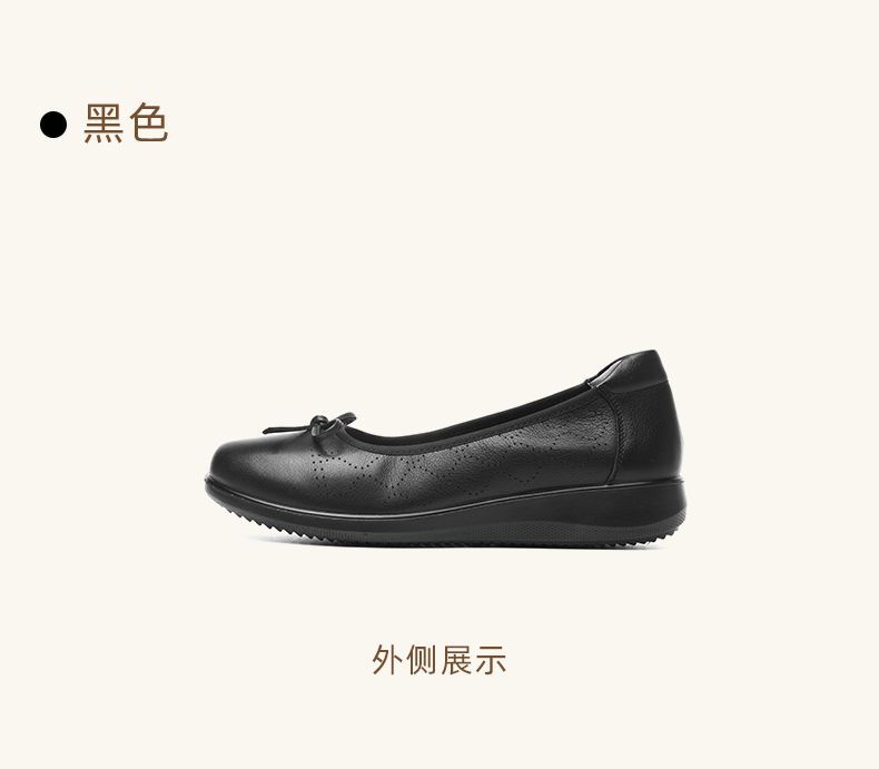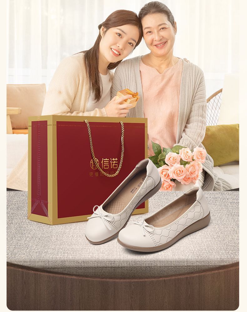 信诺真皮女鞋新款妈妈舒适单鞋软底平底脚蹬休闲中老年豆豆皮鞋子5C9811-63
