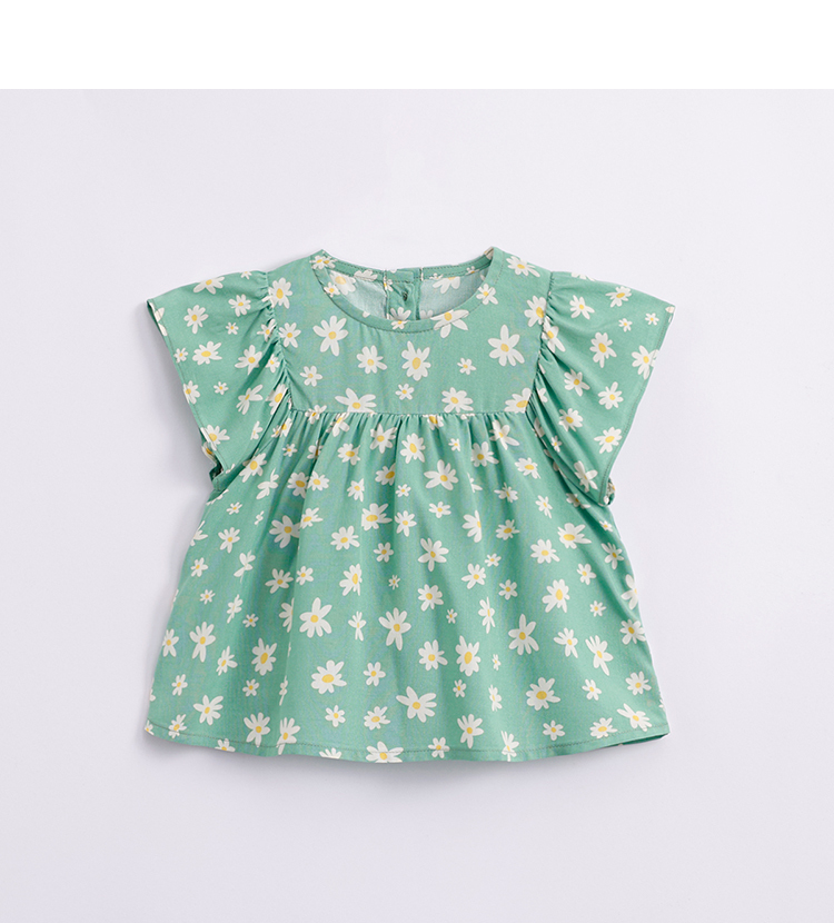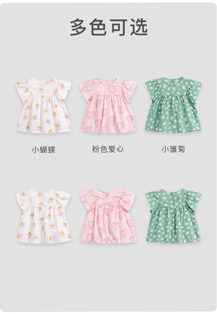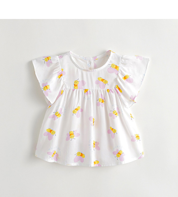 马克珍妮夏装新款 女童花边袖透气防蚊小衫 儿童短袖衬衫230560