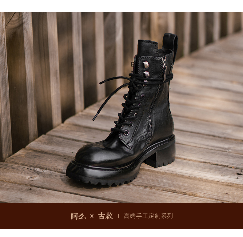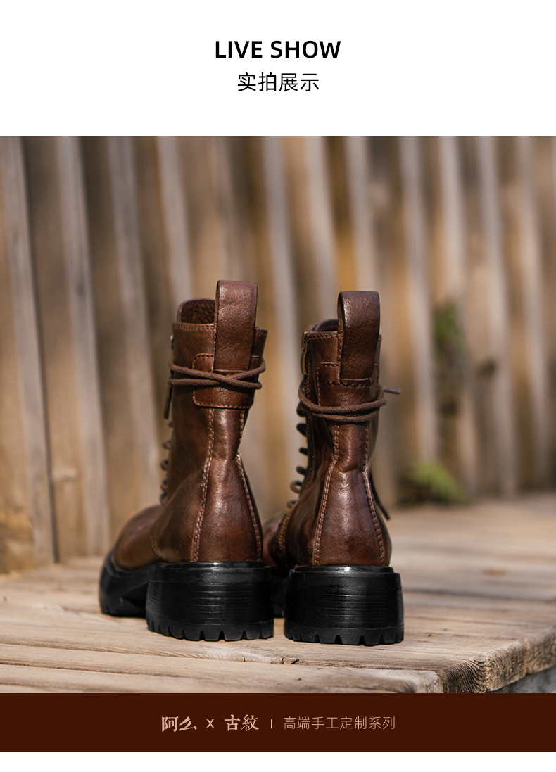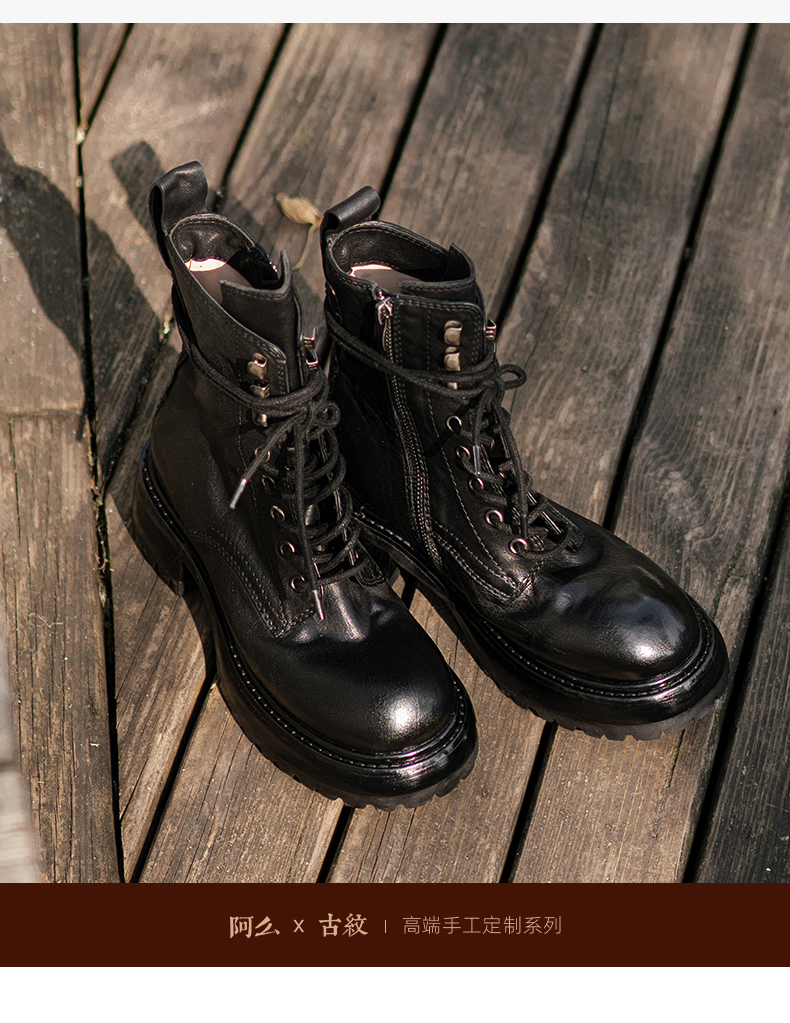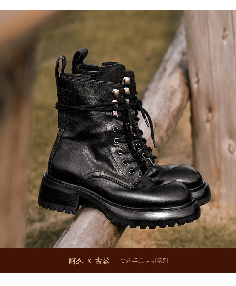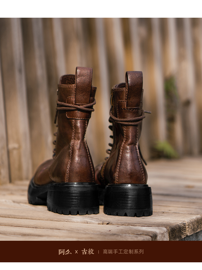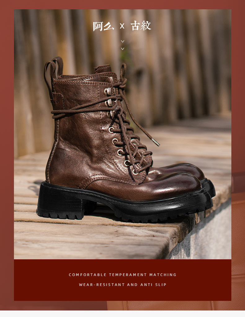 【阿么古纹马皮鞋】英伦风厚底复古马丁靴女系带户外百搭短靴4.2CM