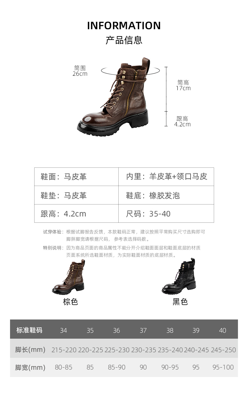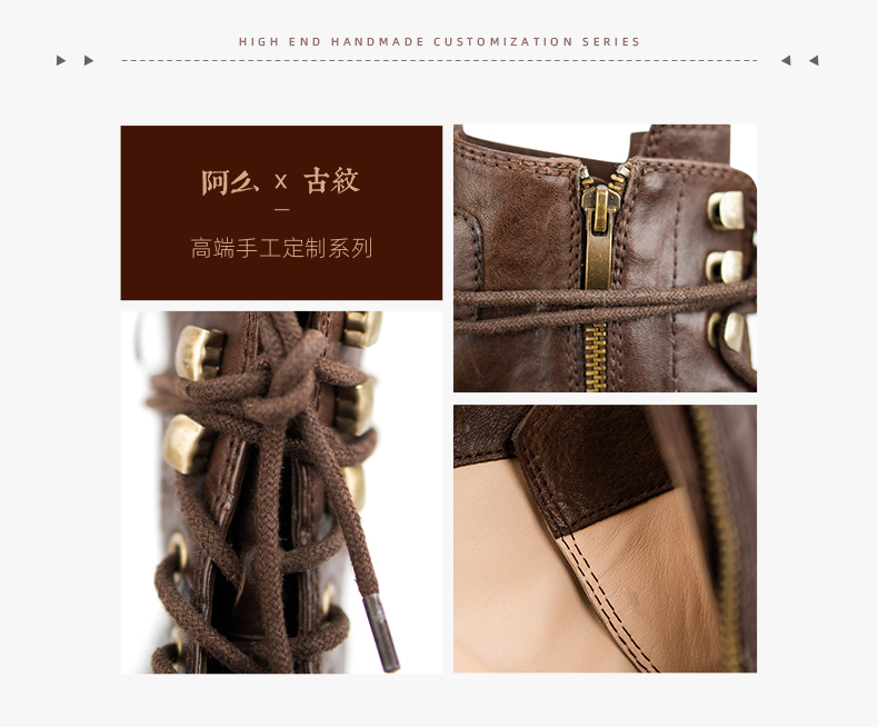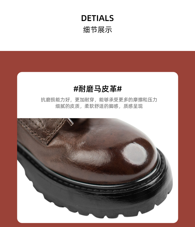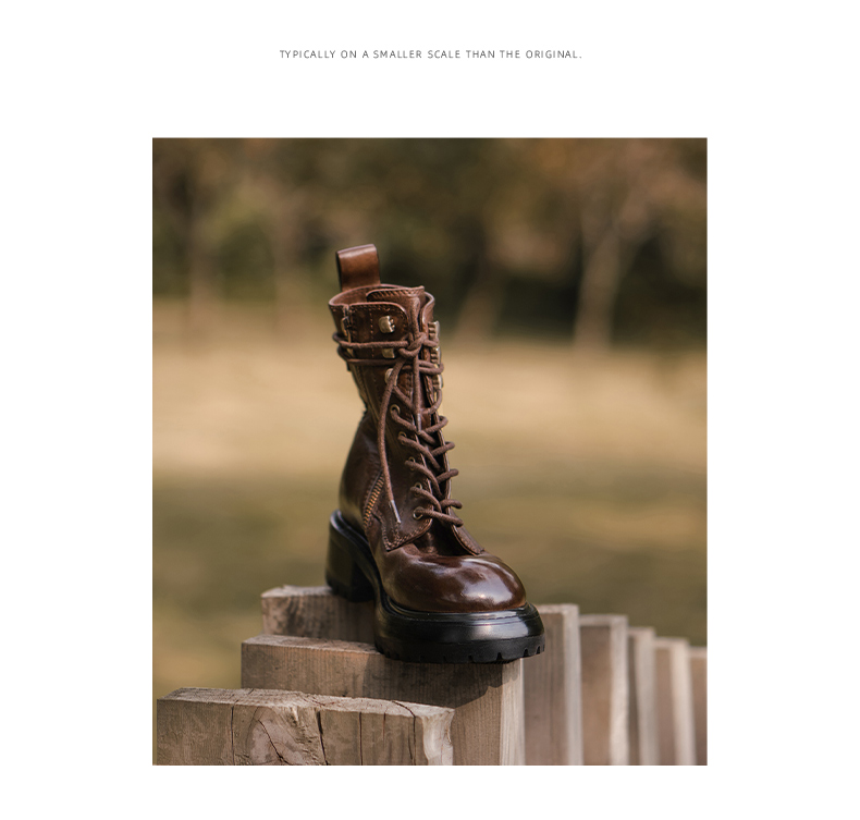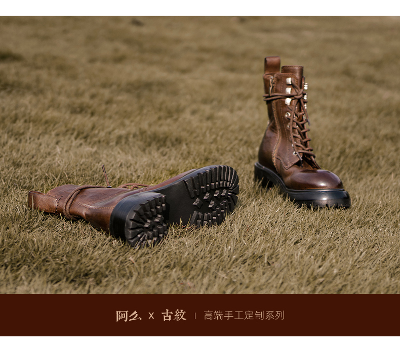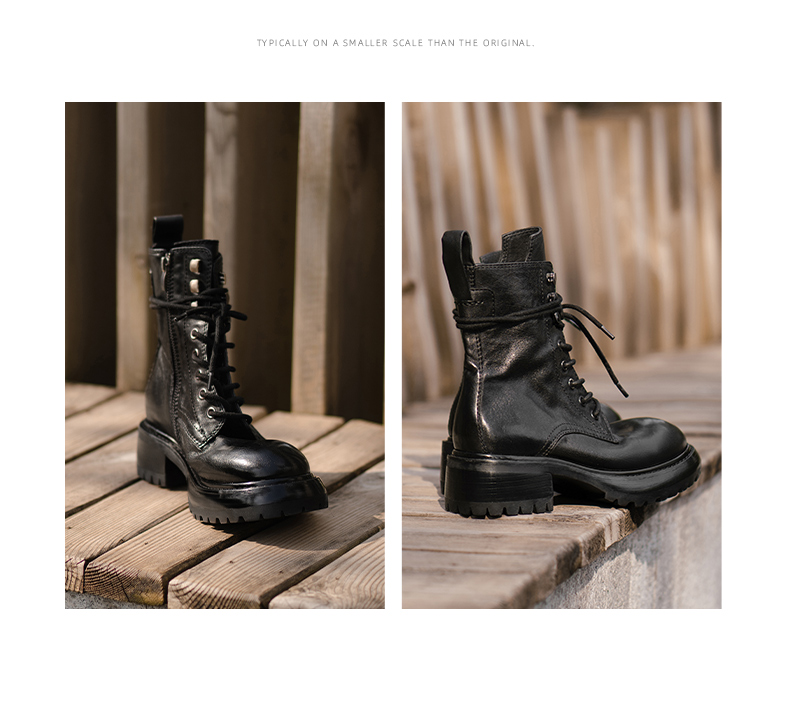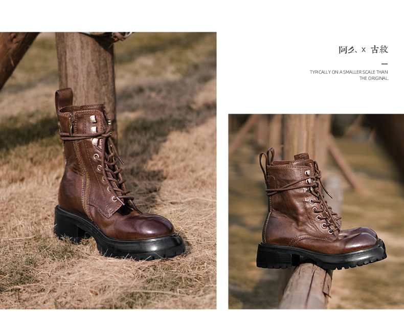【阿么古纹马皮鞋】英伦风厚底复古马丁靴女系带户外百搭短靴4.2CM
