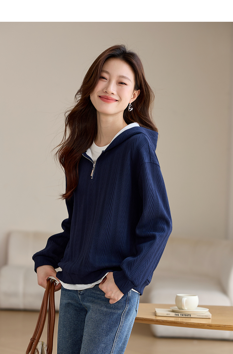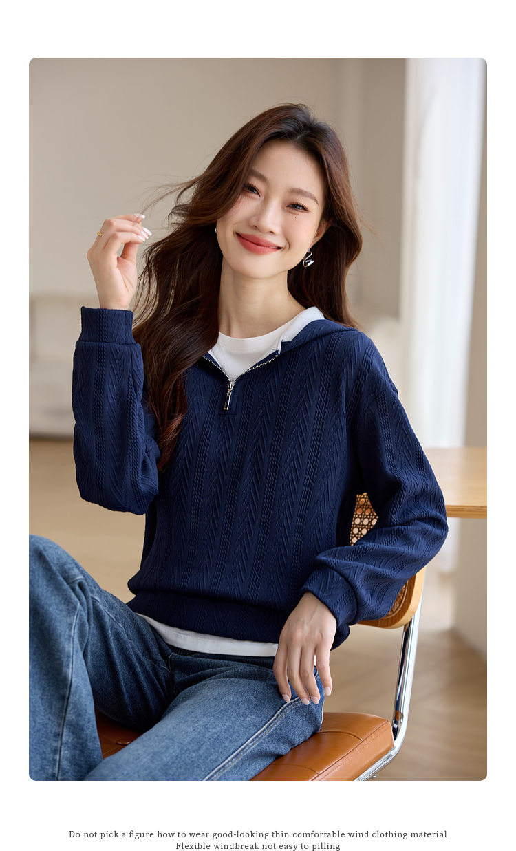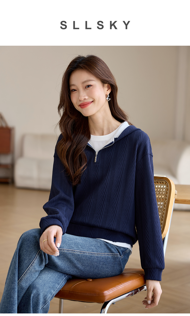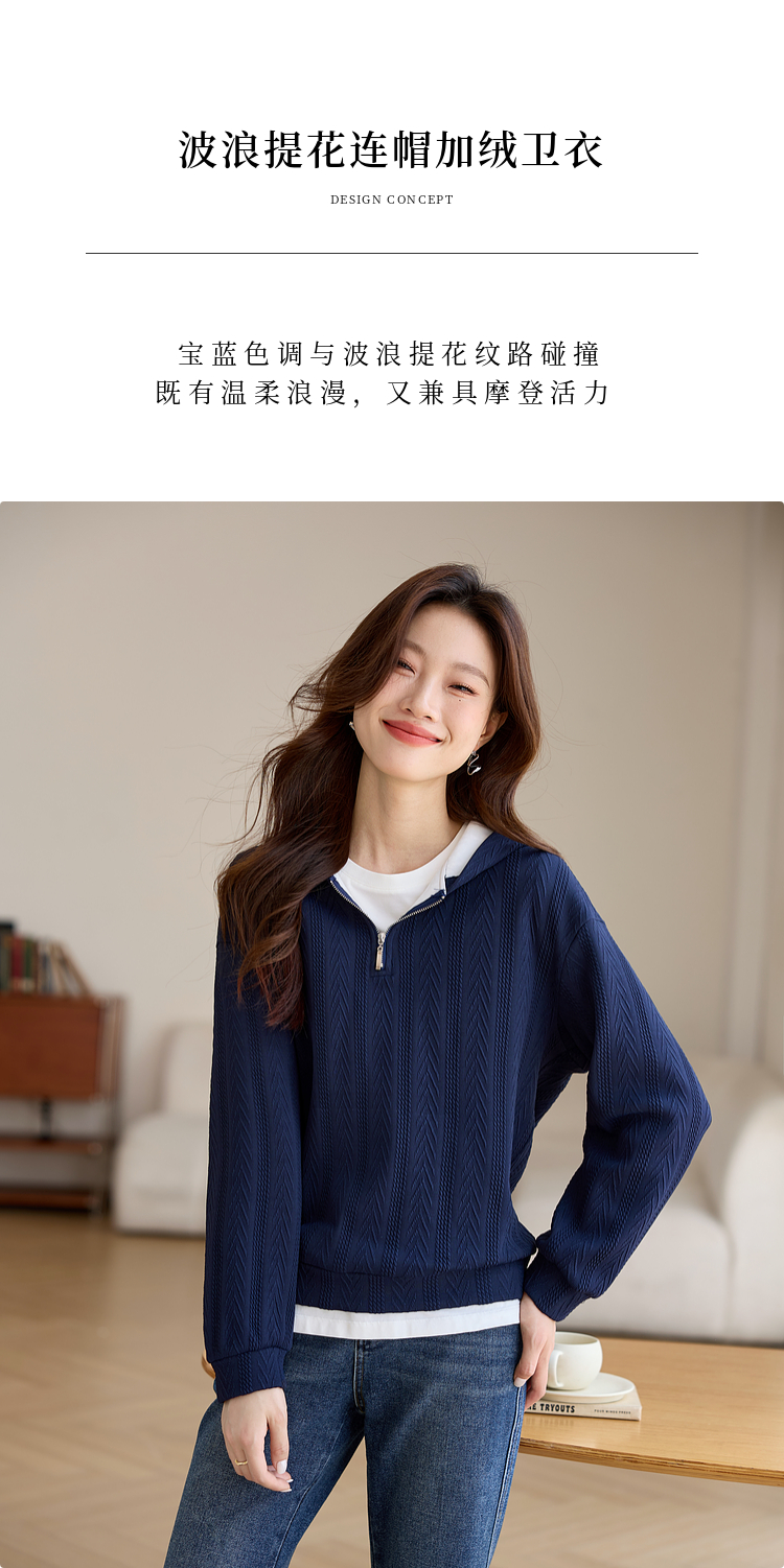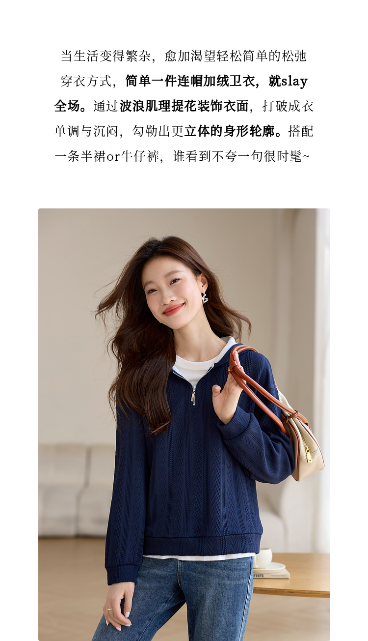 【年货节】熙世界半拉链连帽卫衣女加绒秋冬2025新款提花宽松慵懒风套头上衣