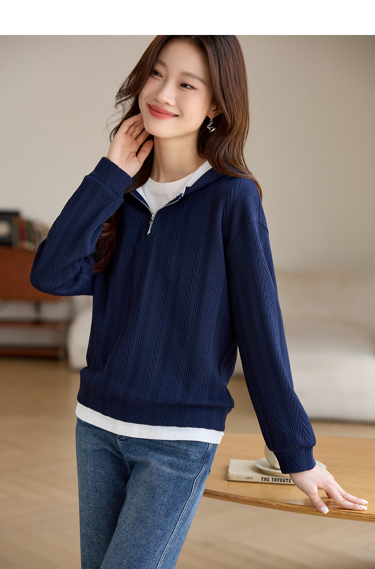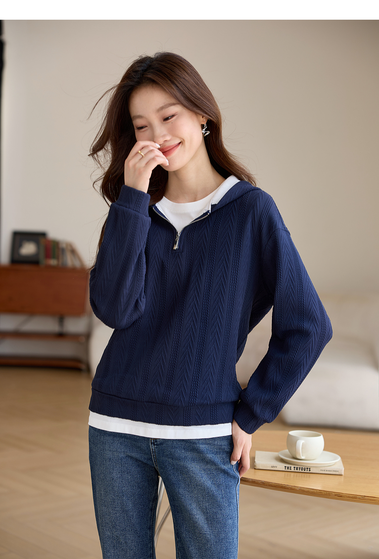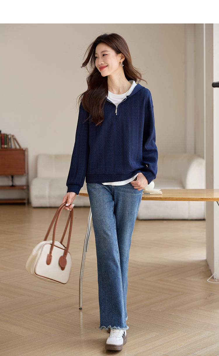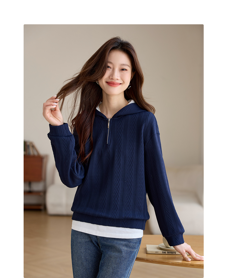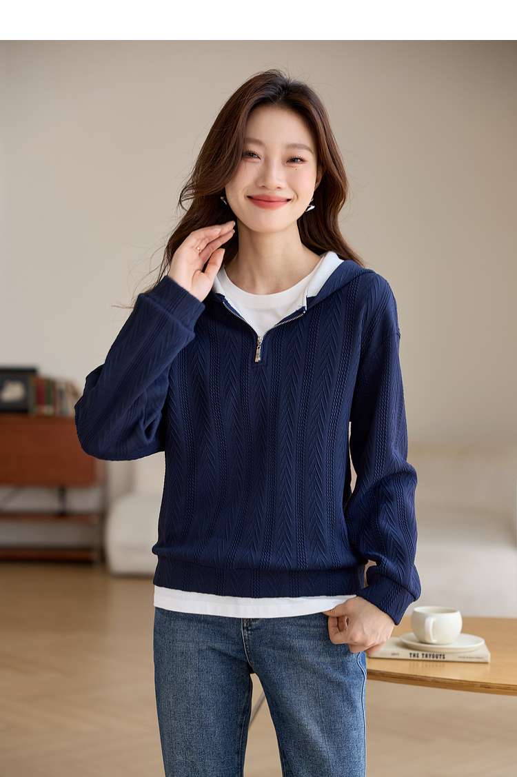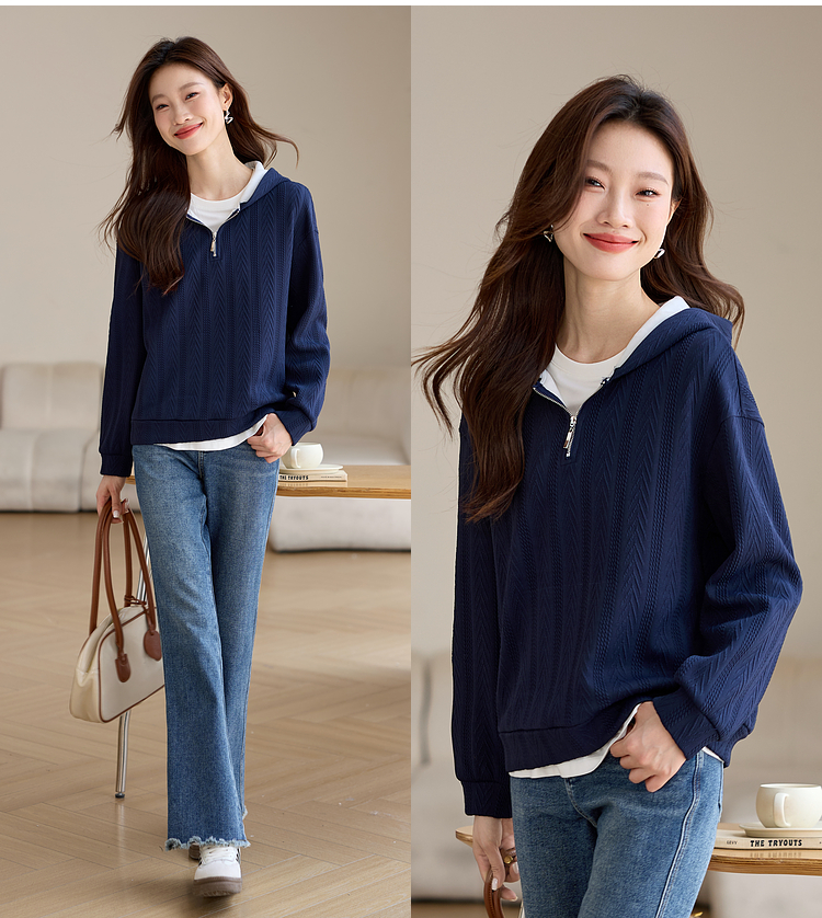 【年货节】熙世界半拉链连帽卫衣女加绒秋冬2025新款提花宽松慵懒风套头上衣