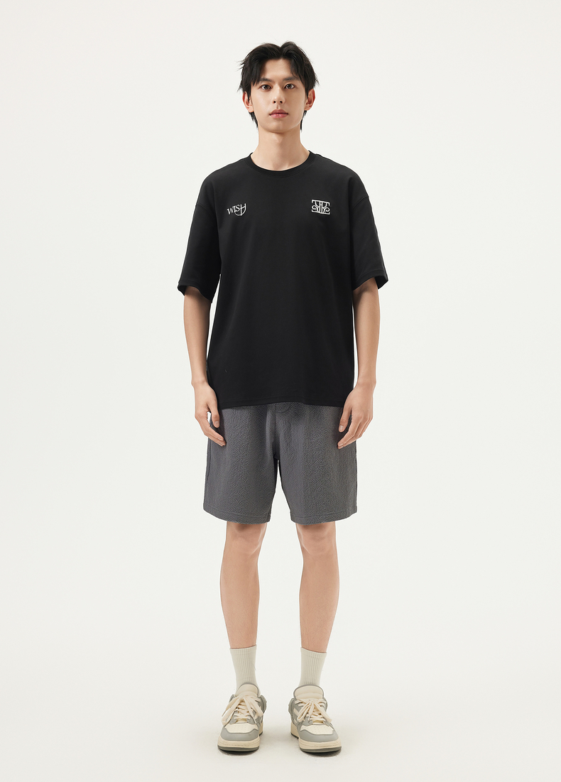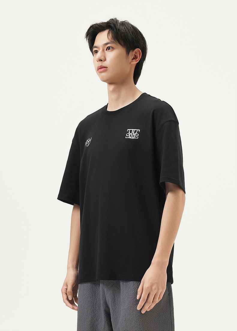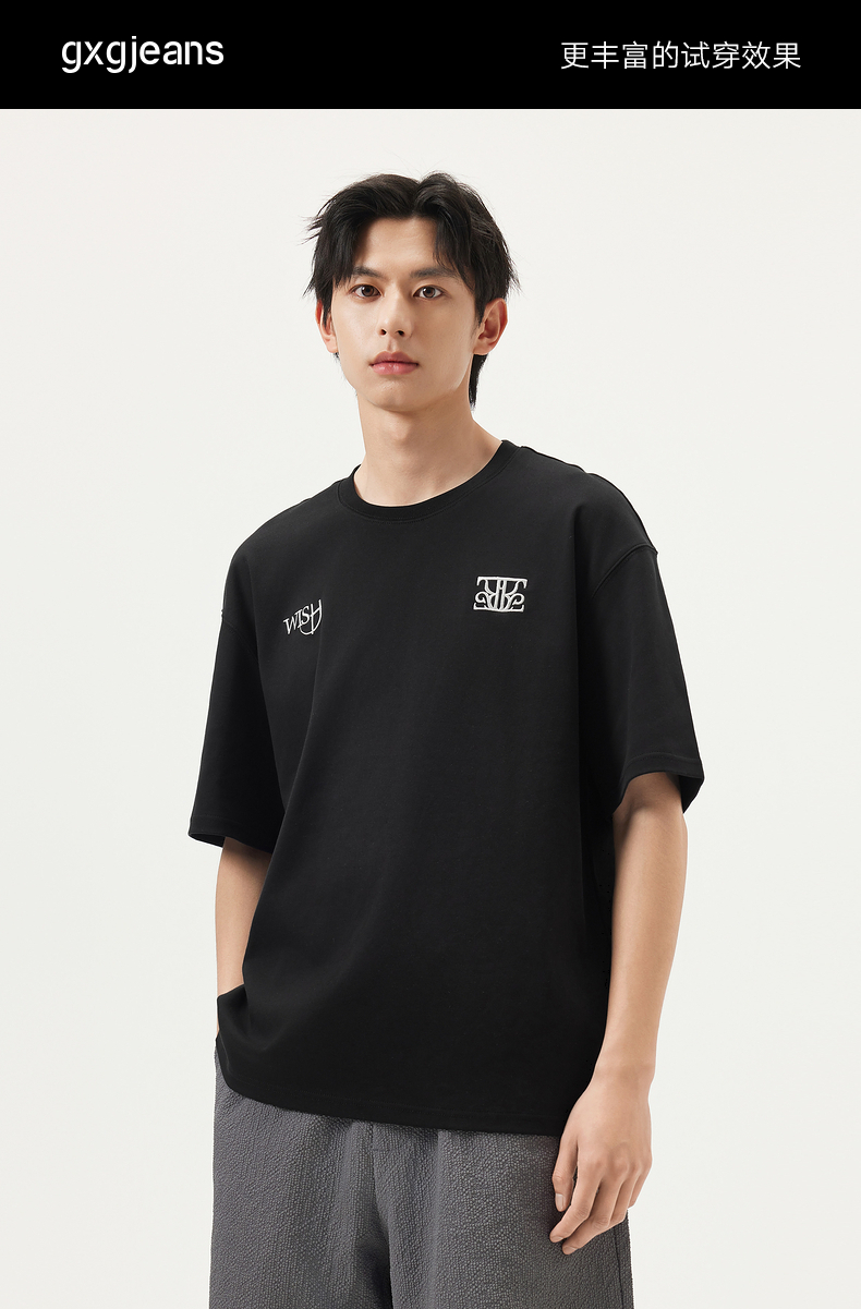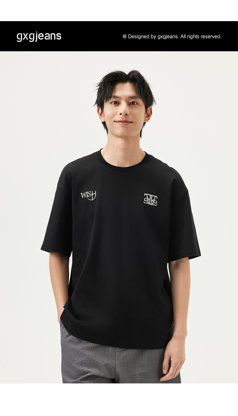 gxg.jeans男装 黑色字母绣花简约休闲宽松基础短袖T恤男 25夏热卖
