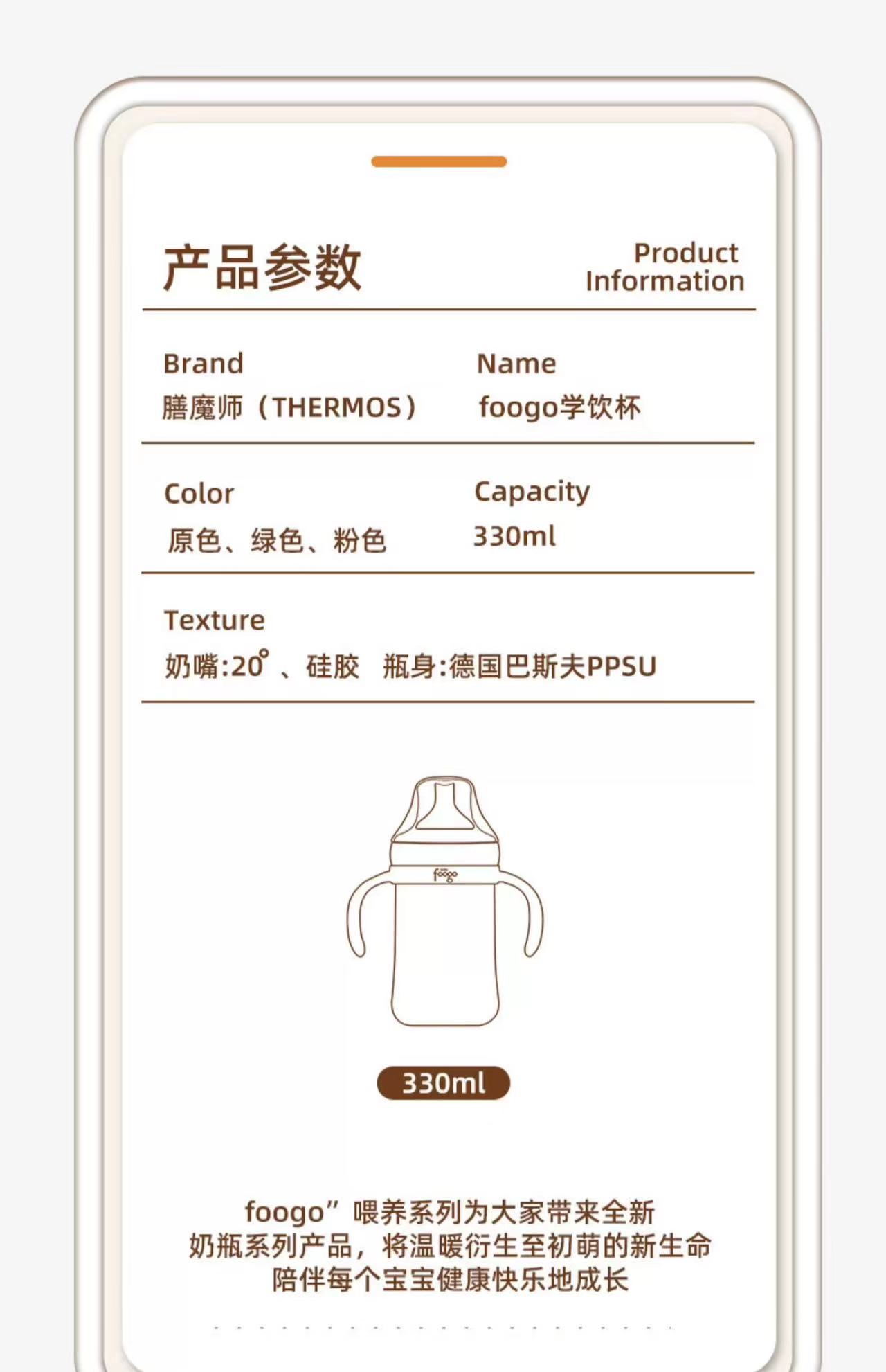 膳魔师foogo 婴儿学饮嘴 6月龄+吸管杯 330ml