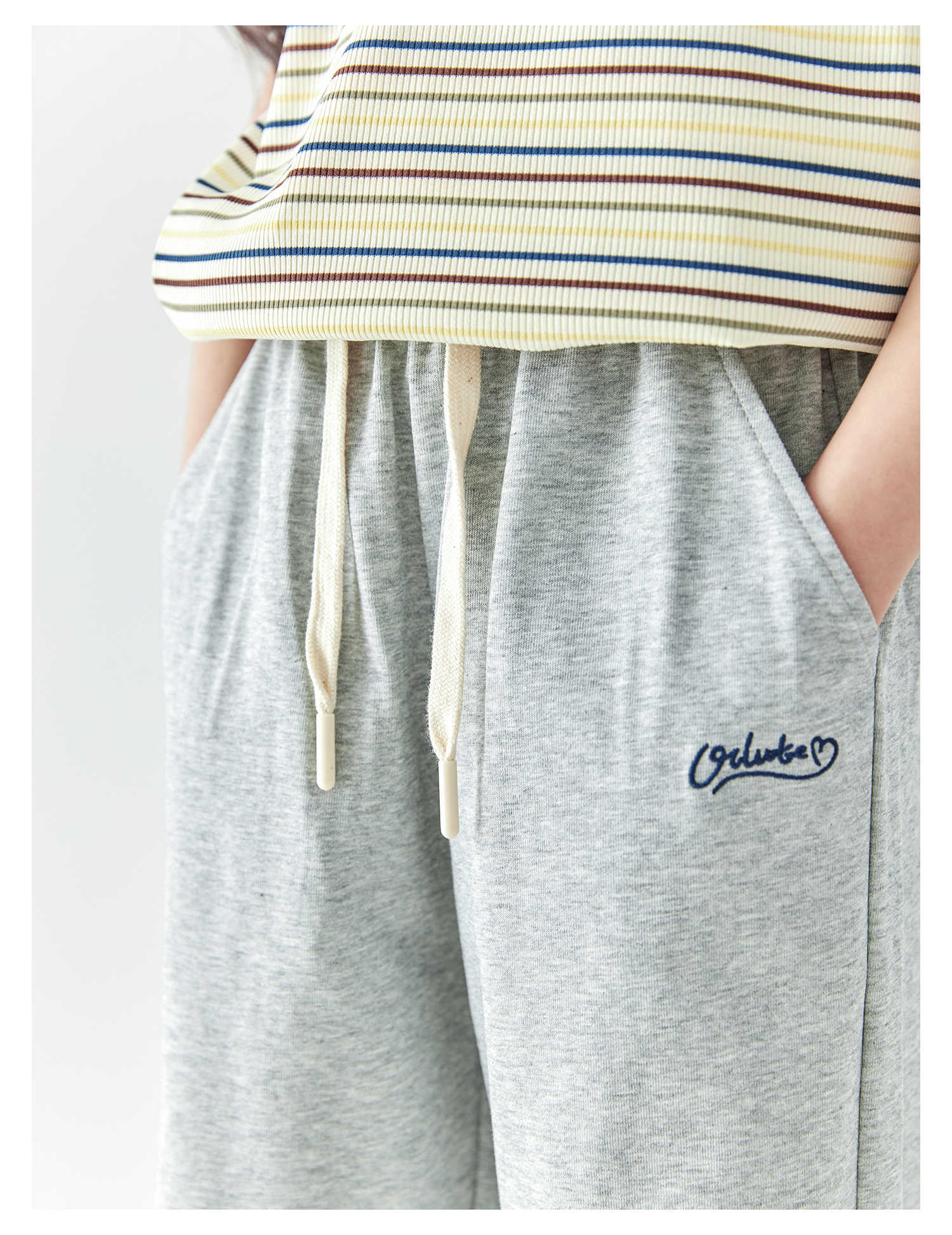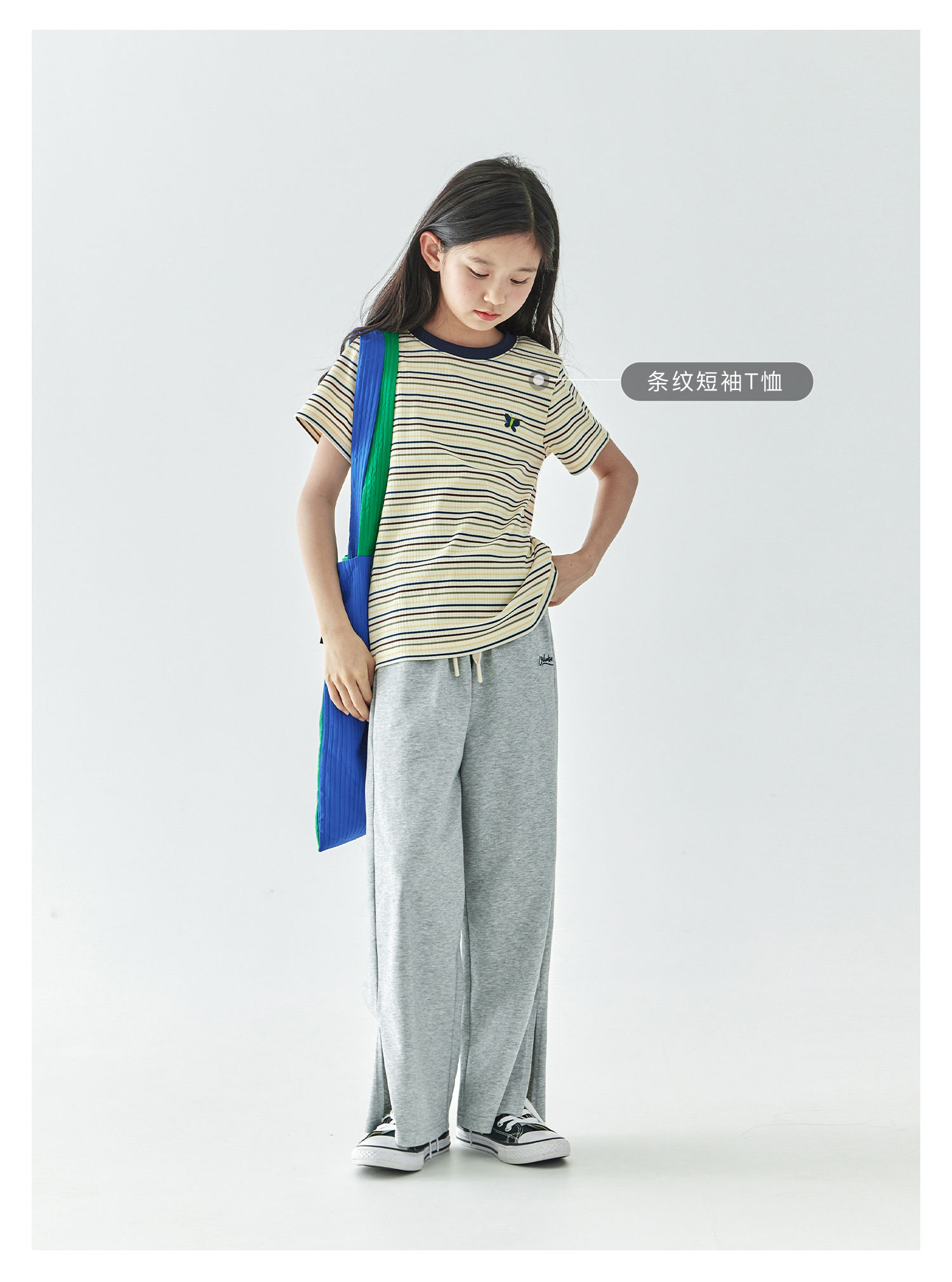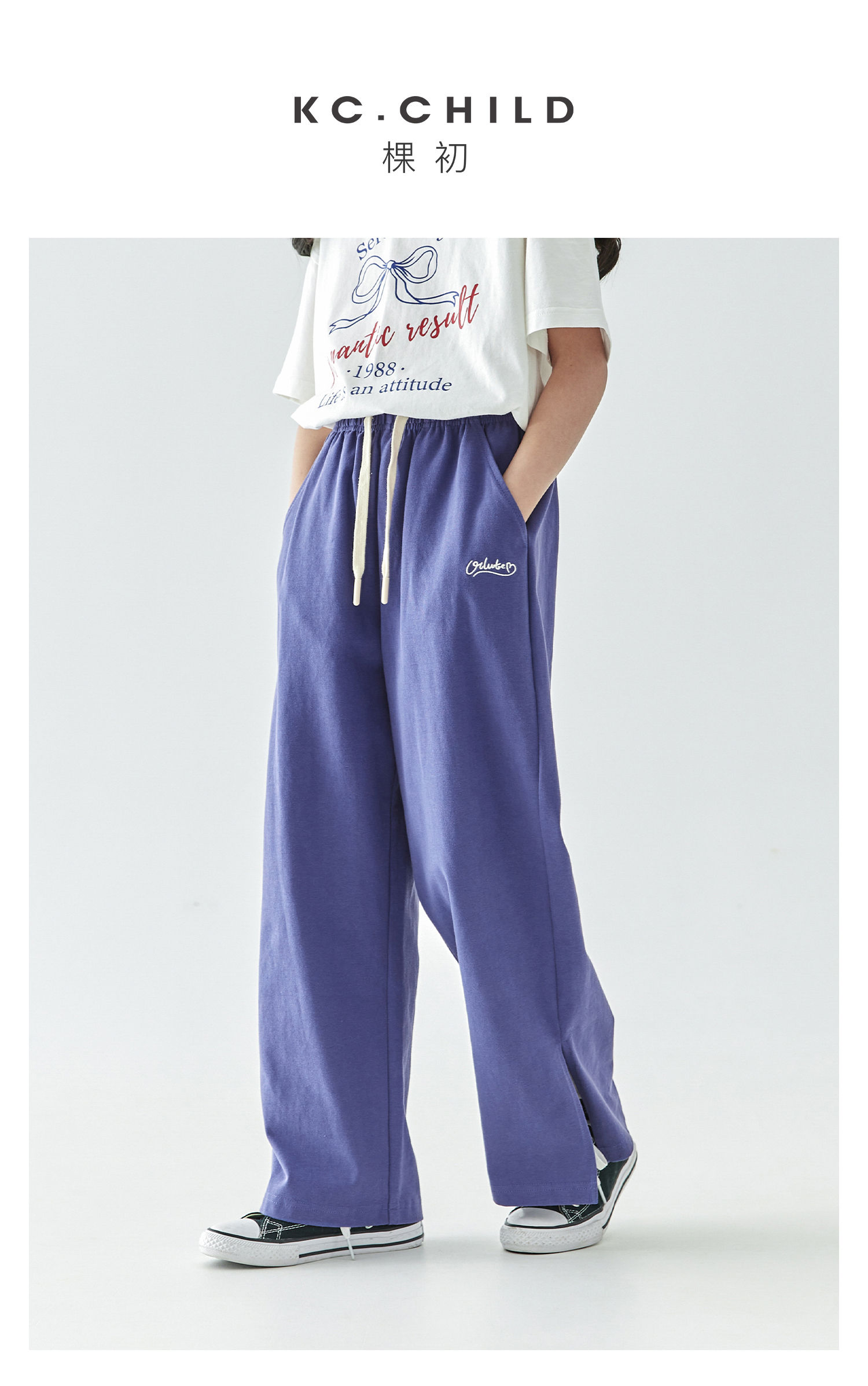 棵初25年春夏新款童装凉感休闲宽松卫裤中大童字母绣花裤子亲子款