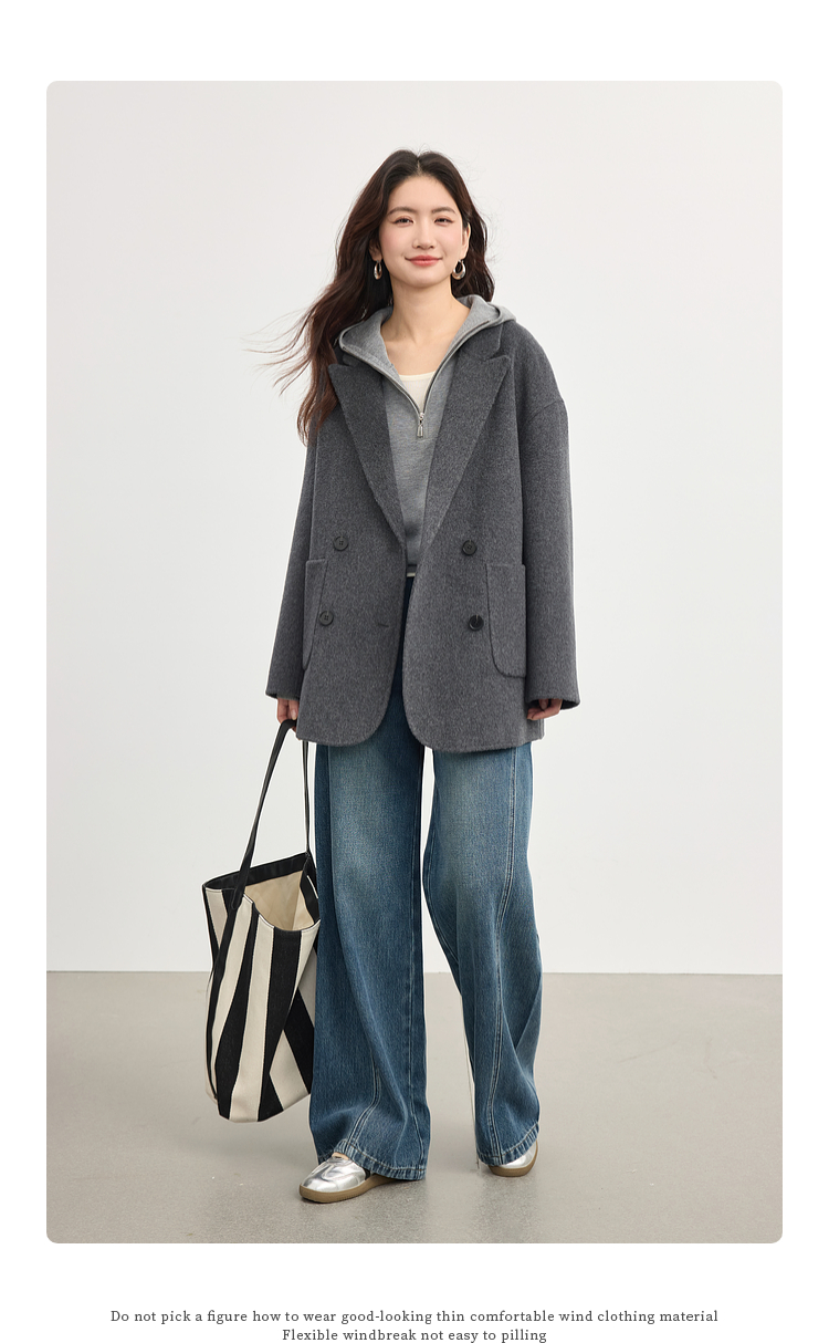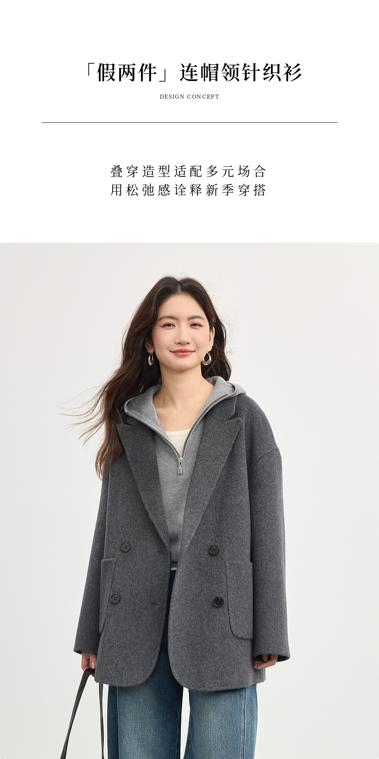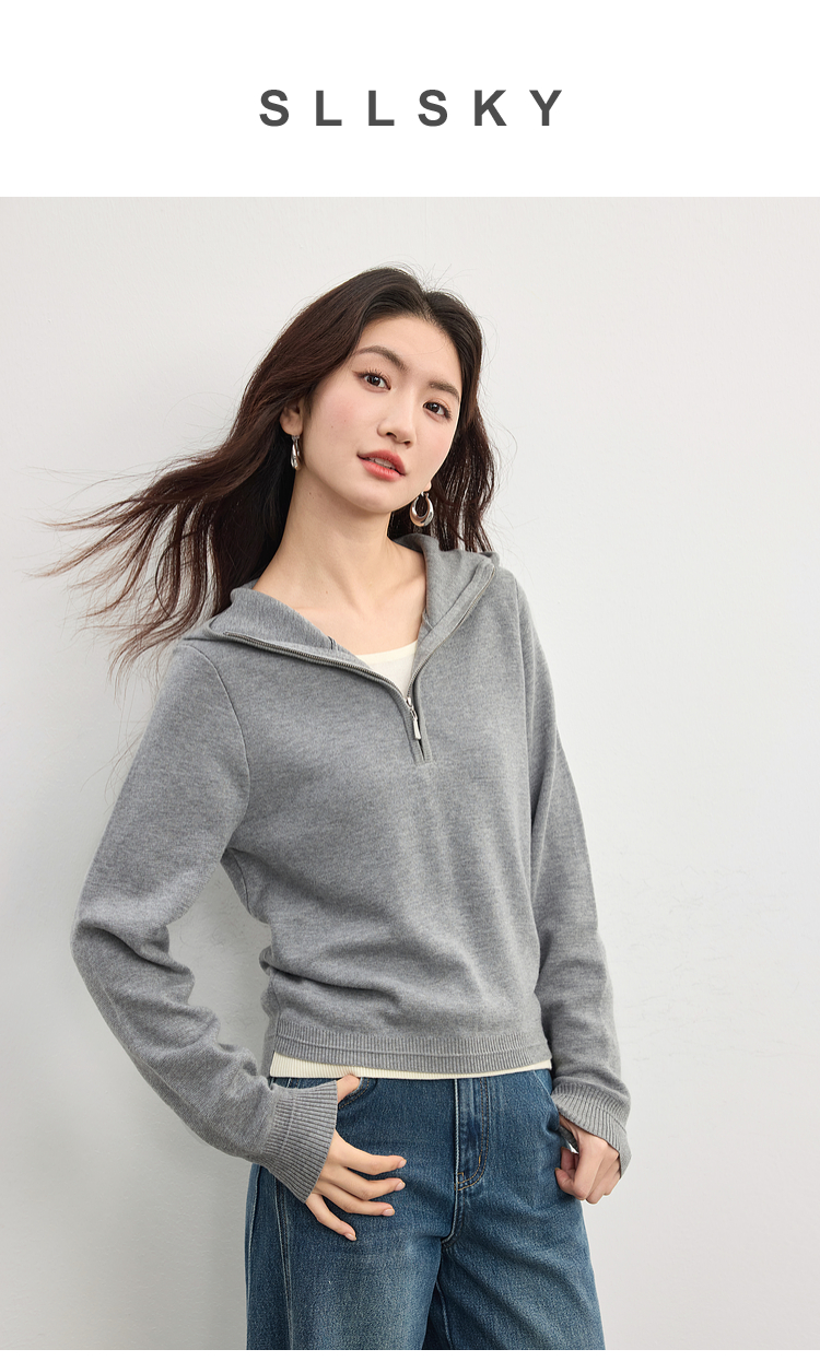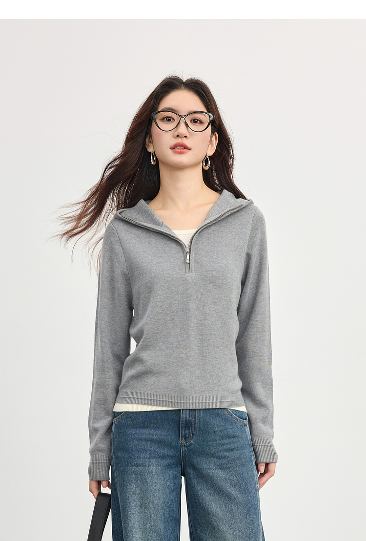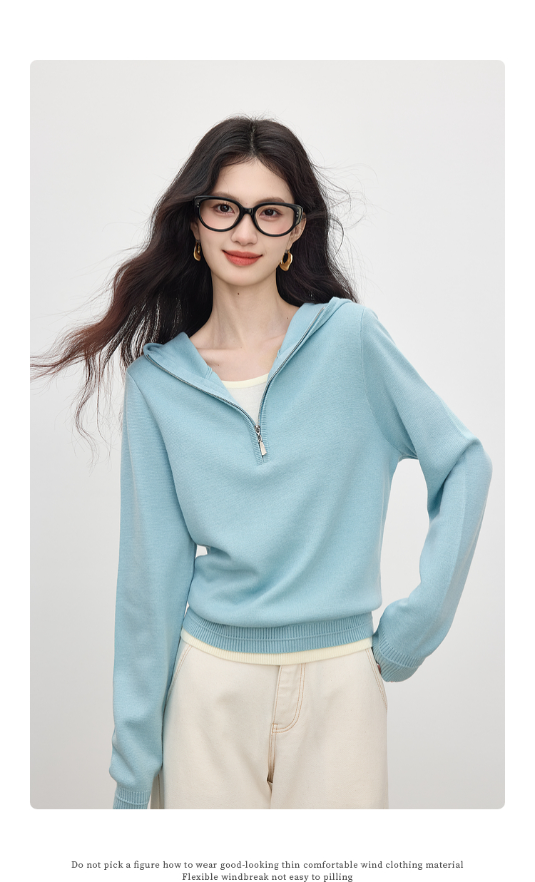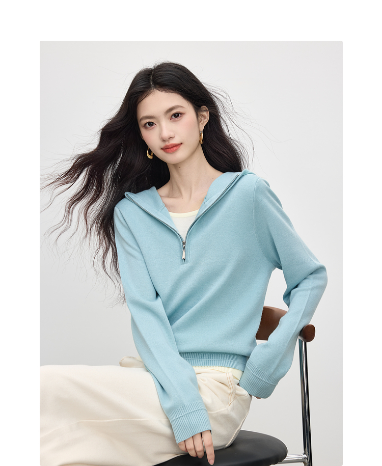 【09/03新品】熙世界半拉链连帽针织衫女2025年秋季新款羊毛假两件套头毛衫上衣