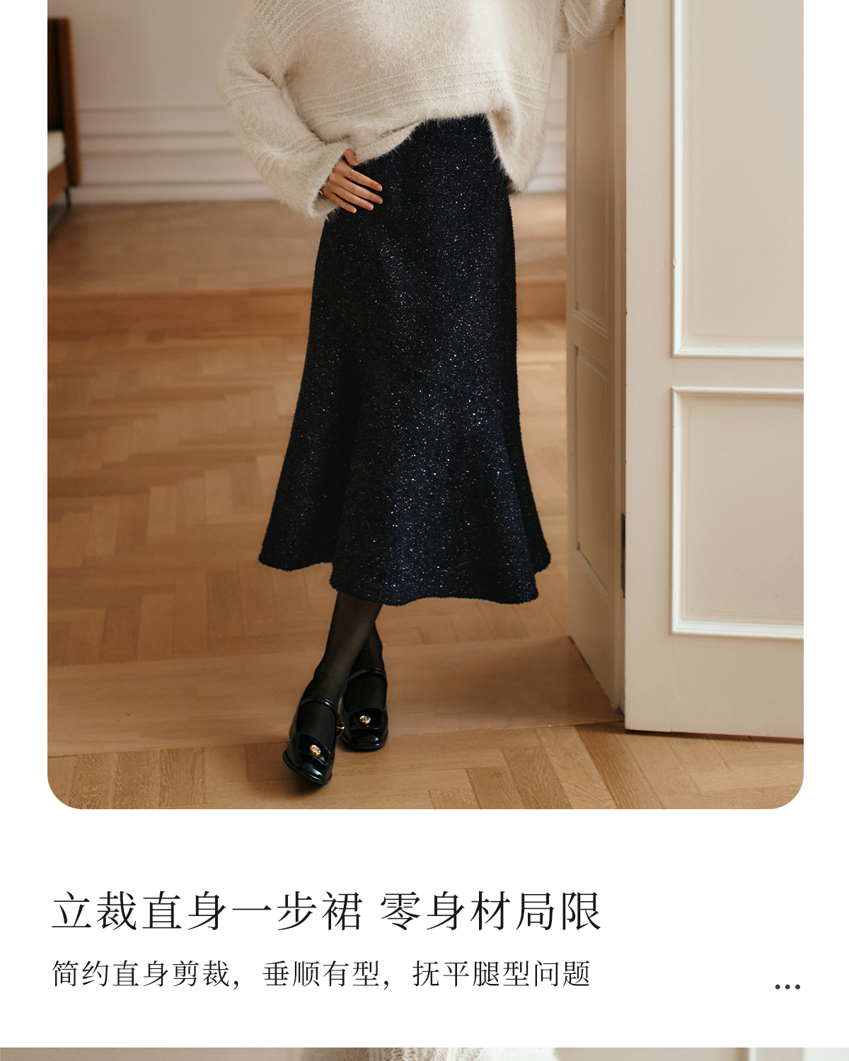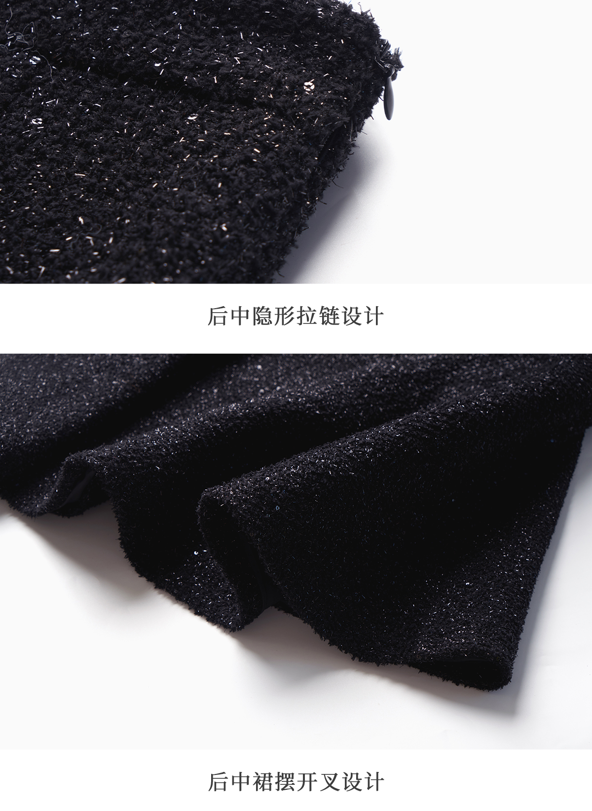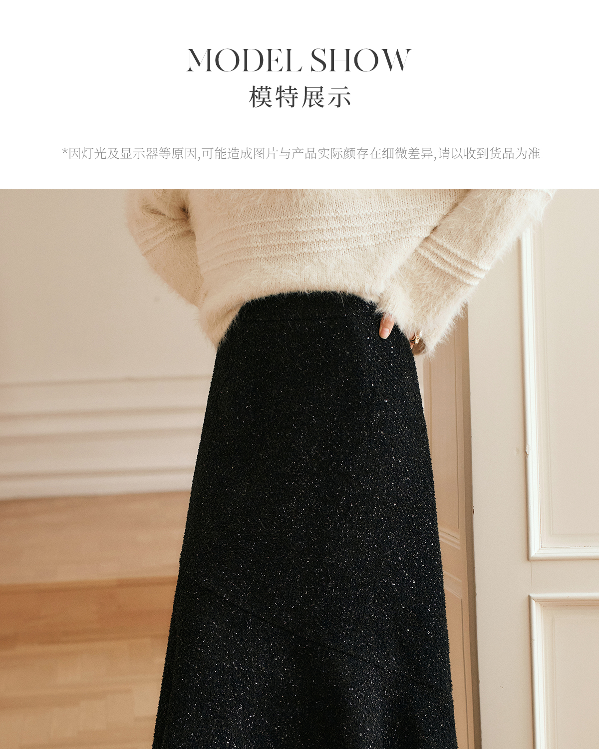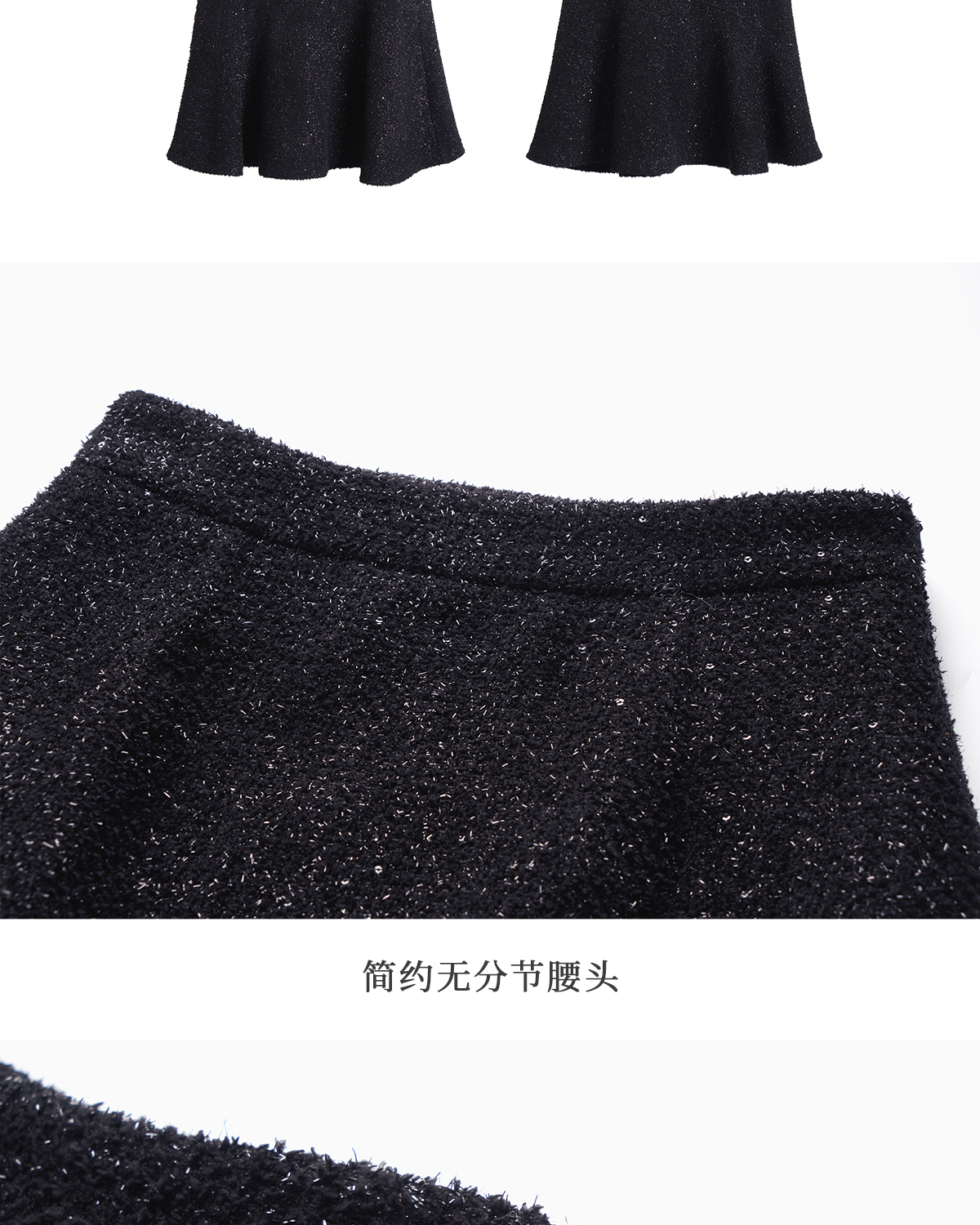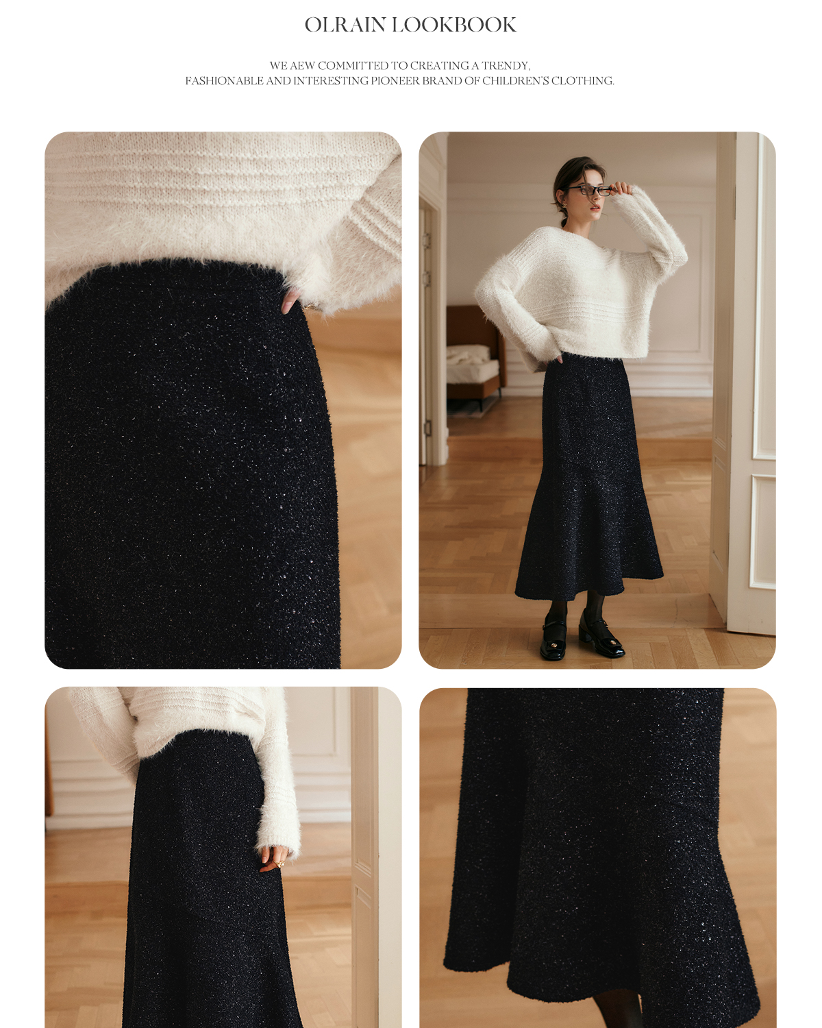 OLrain欧芮儿法式黑色半身裙女冬季2024年新款气质通勤亮片鱼尾裙