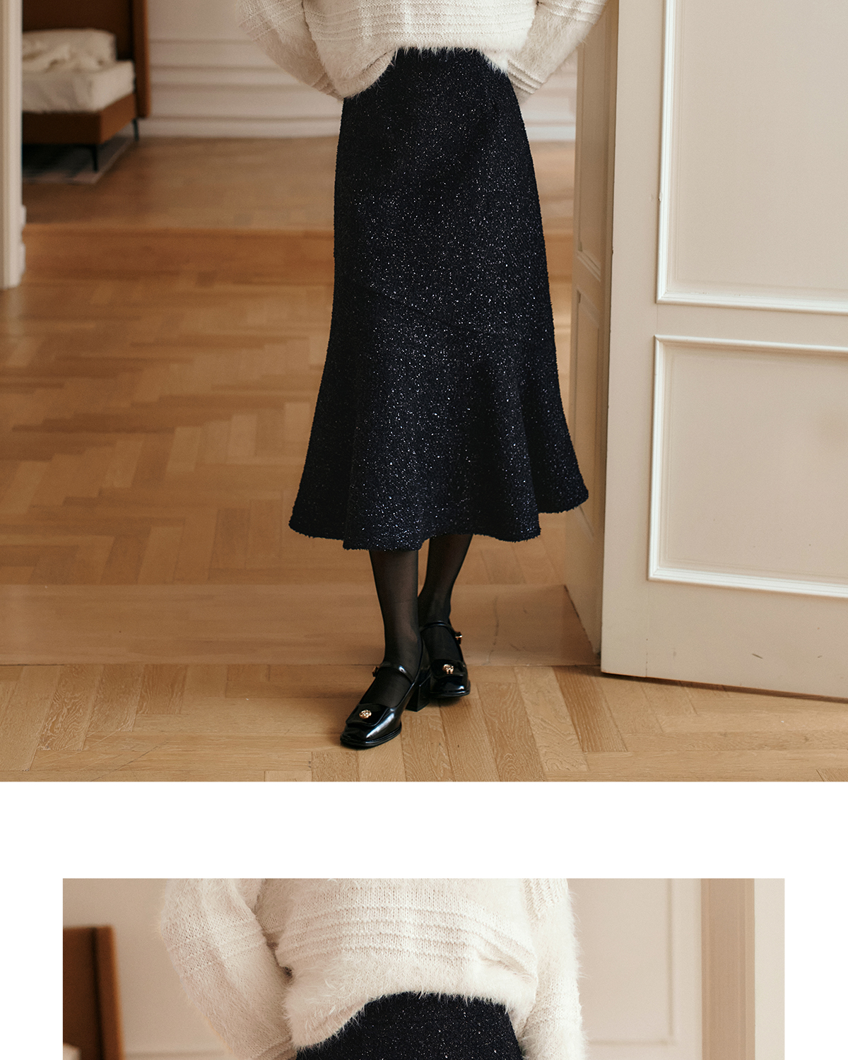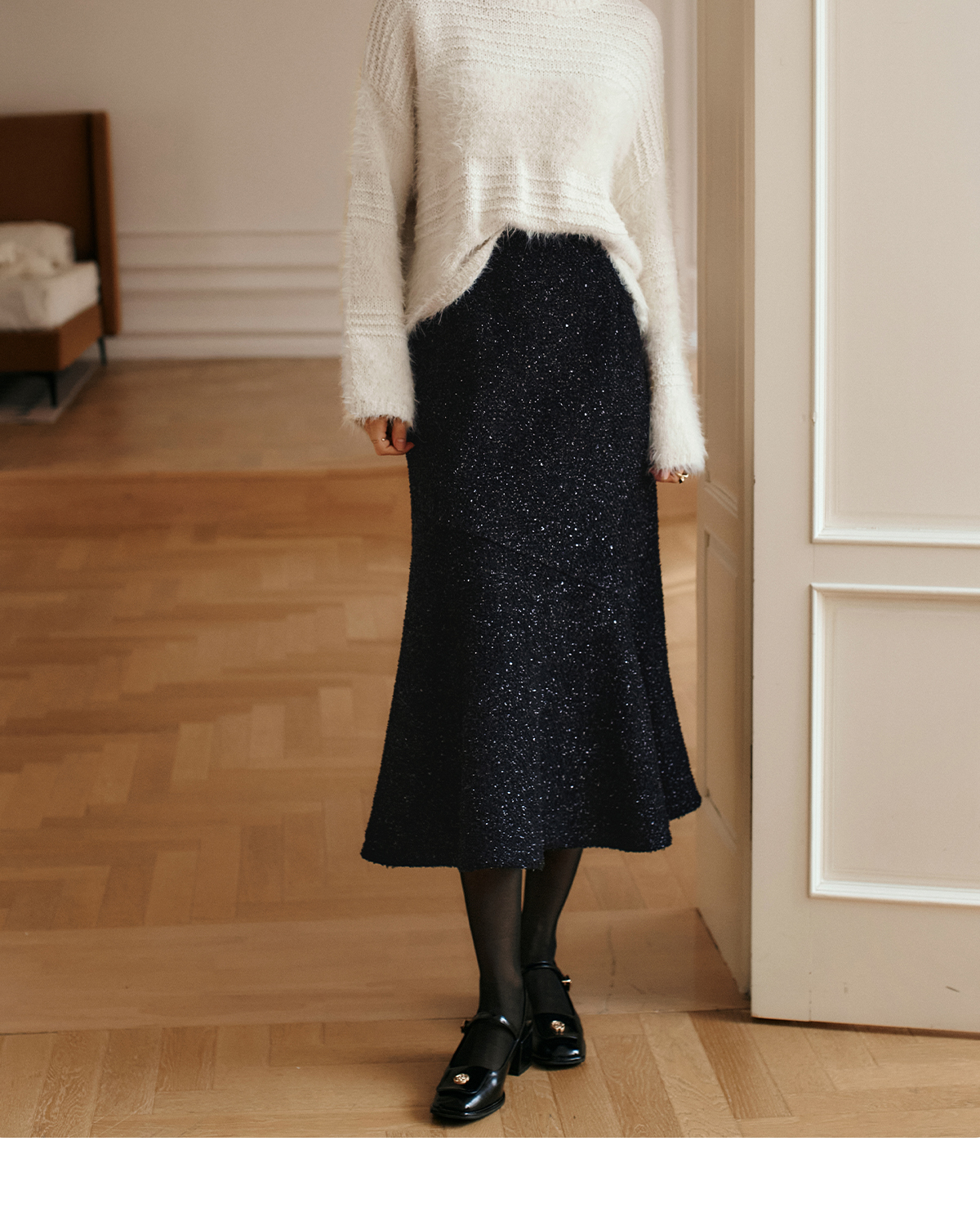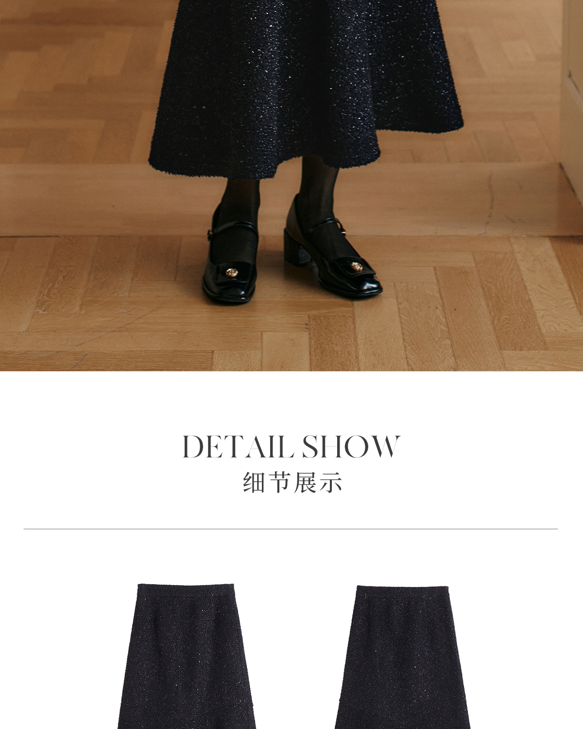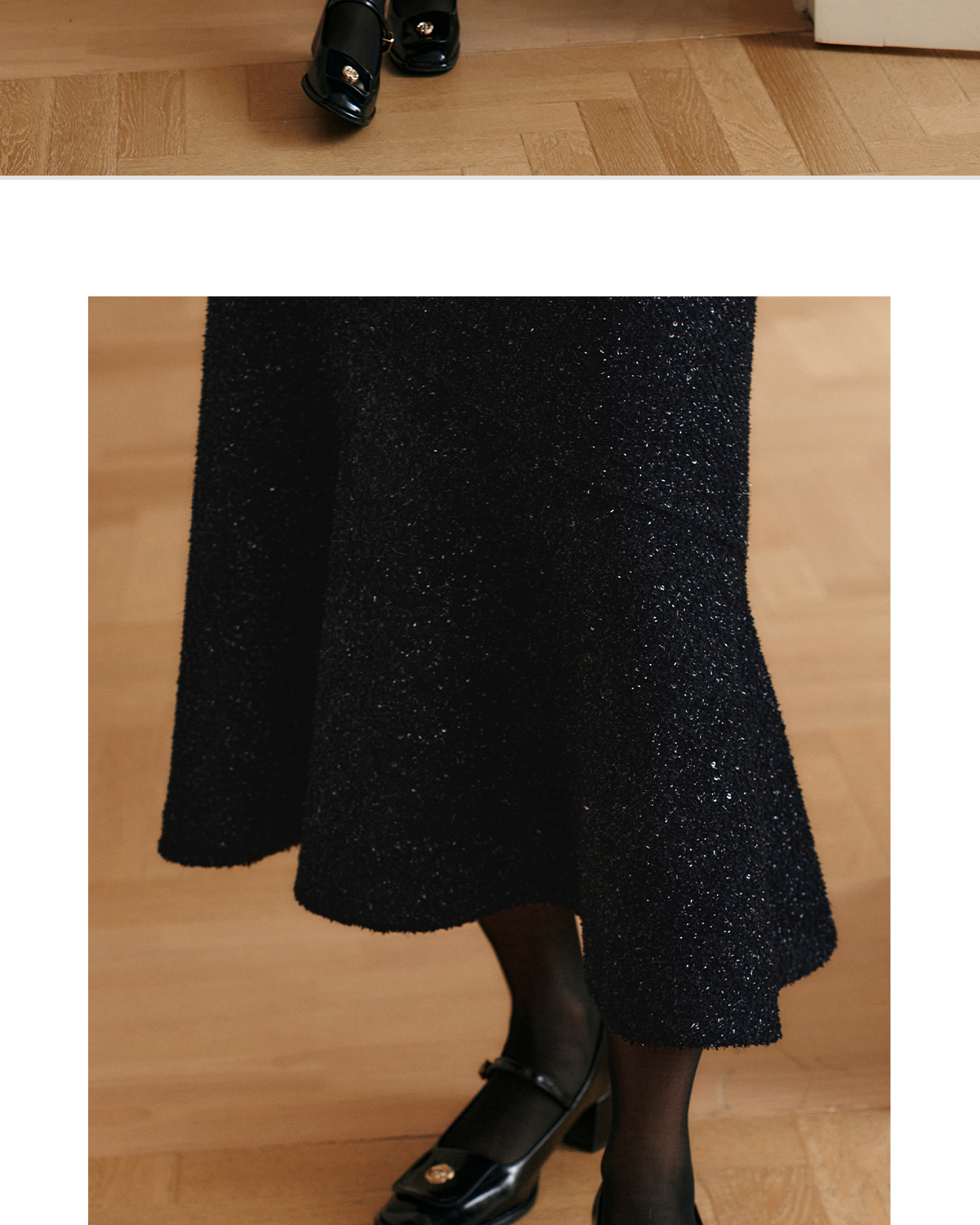 OLrain欧芮儿法式黑色半身裙女冬季2024年新款气质通勤亮片鱼尾裙