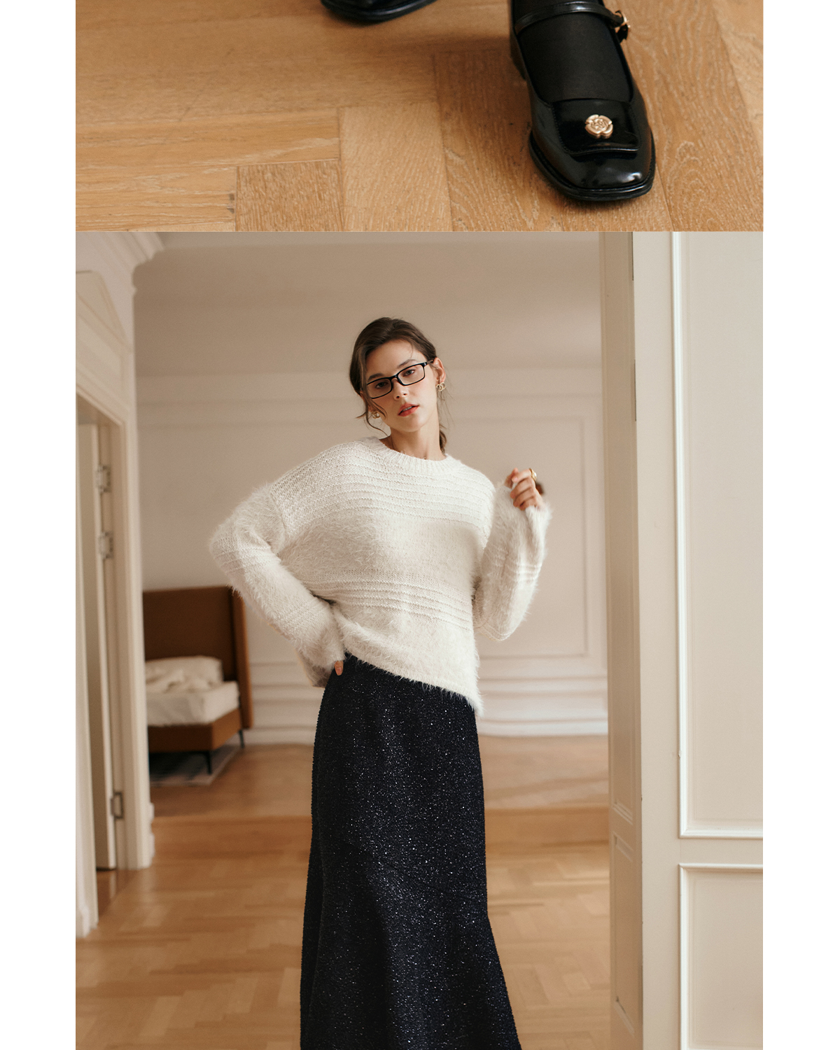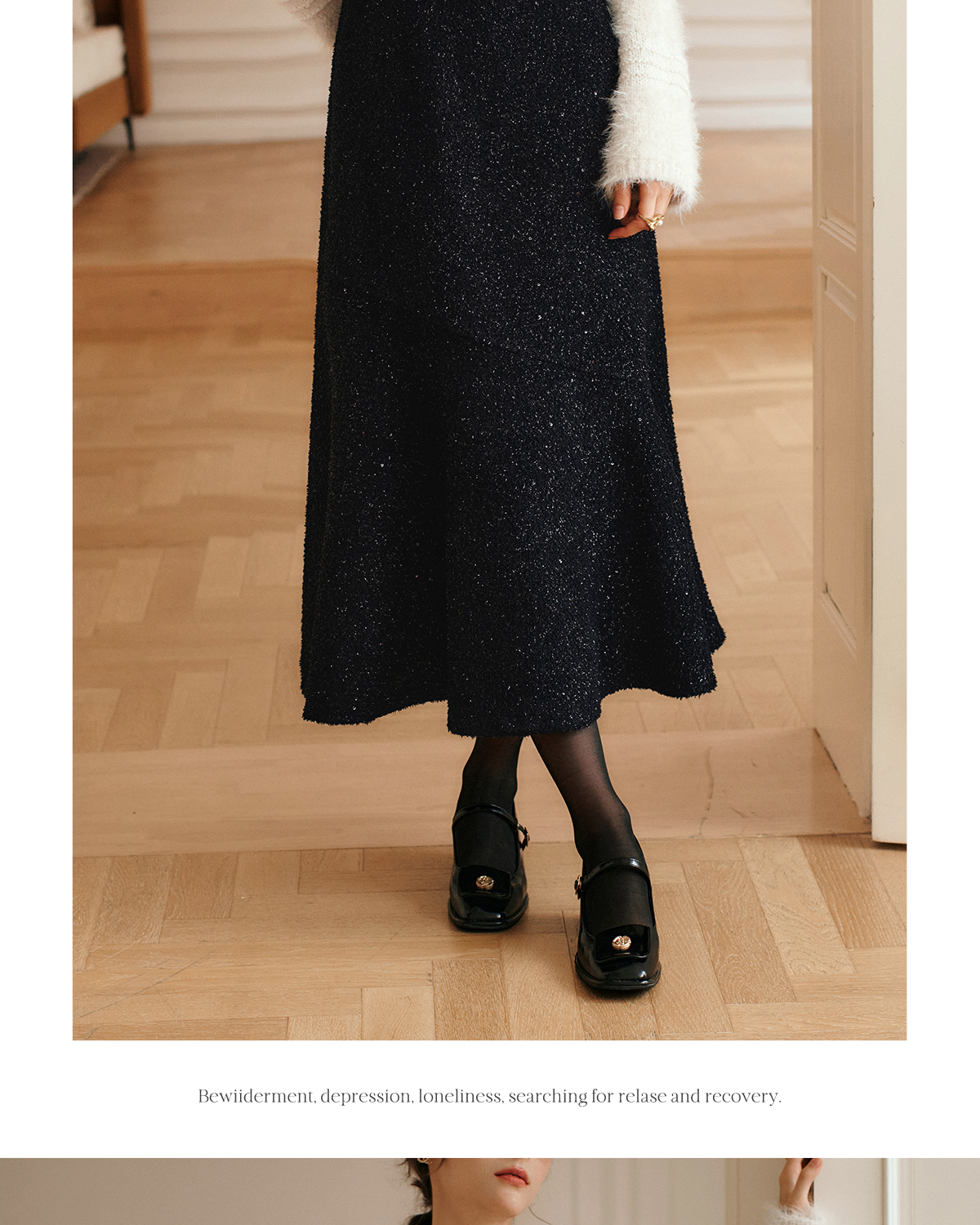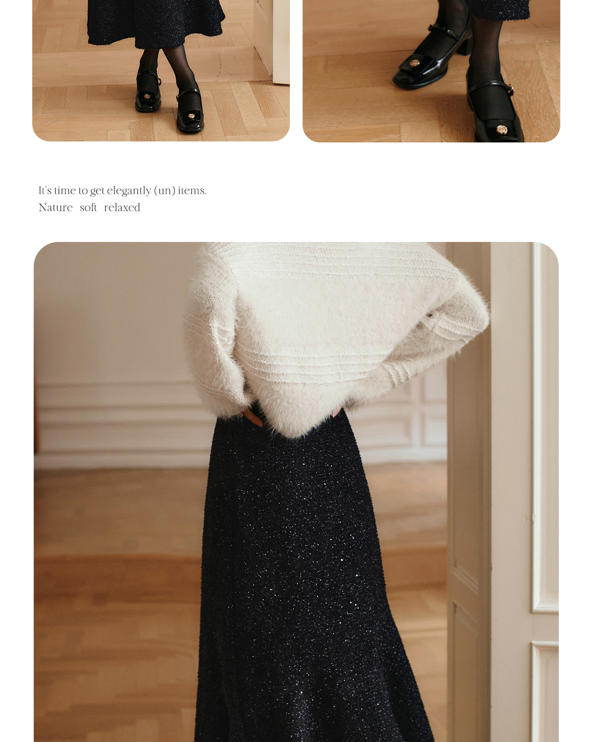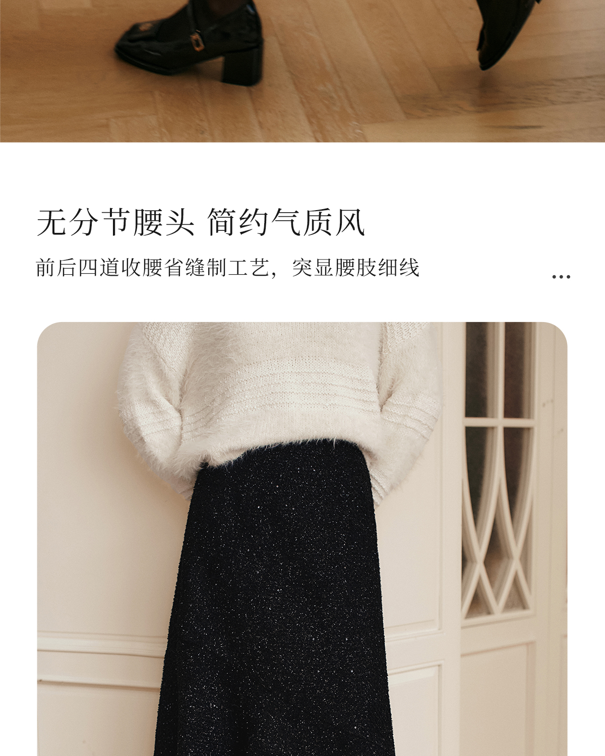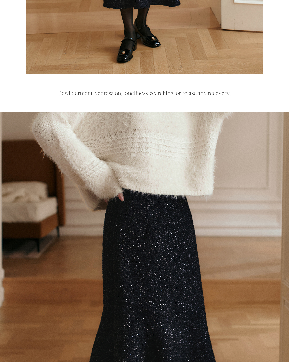 OLrain欧芮儿法式黑色半身裙女冬季2024年新款气质通勤亮片鱼尾裙