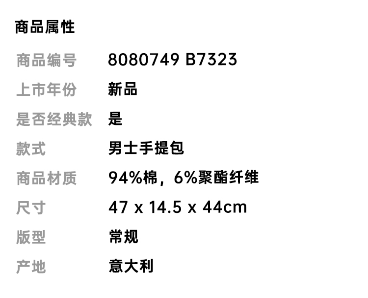 【二】BURBERRY 巴宝莉 男士中号马术骑士徽标帆布托特包 灰色 8080749 B7323