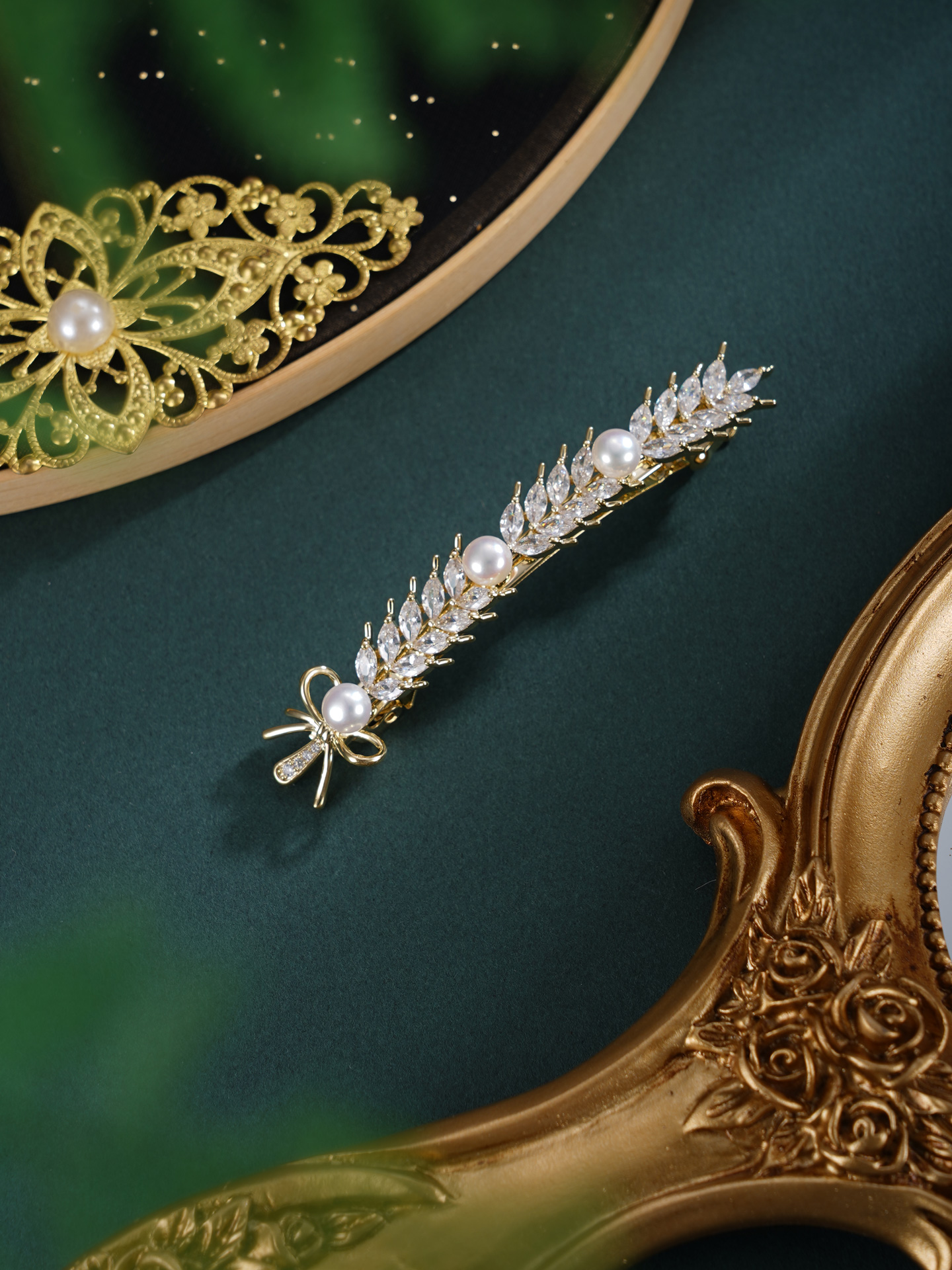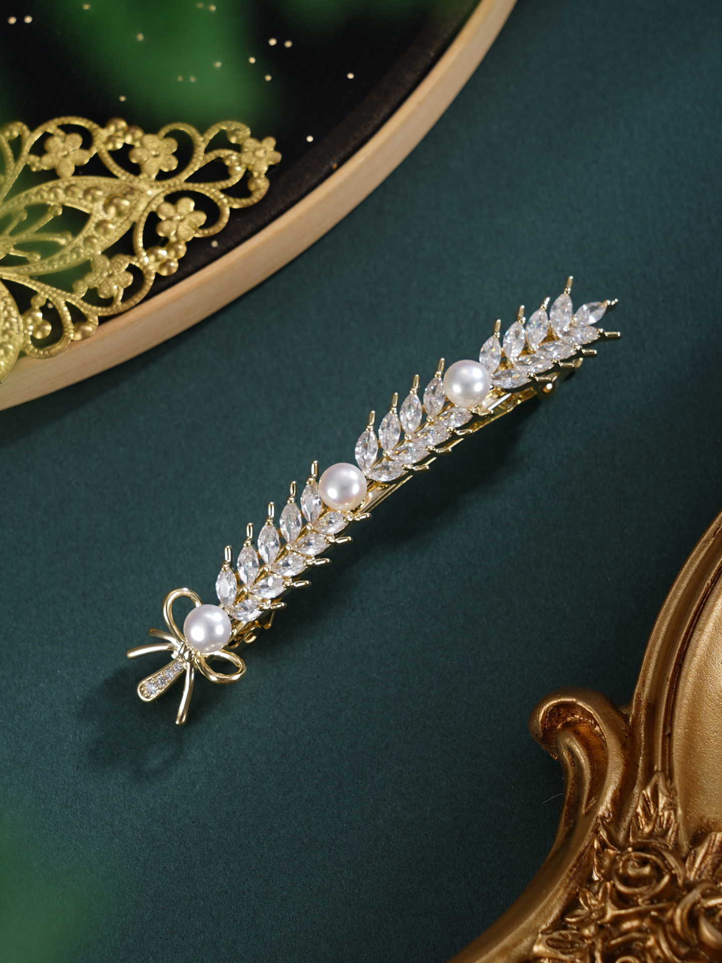 子佩集【岁岁丰年】珍珠惜王妃发夹【HBFJ031】5mm珠镀金麦穗2601