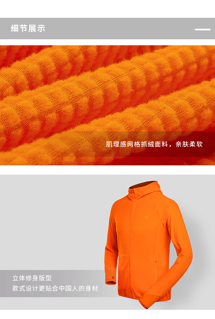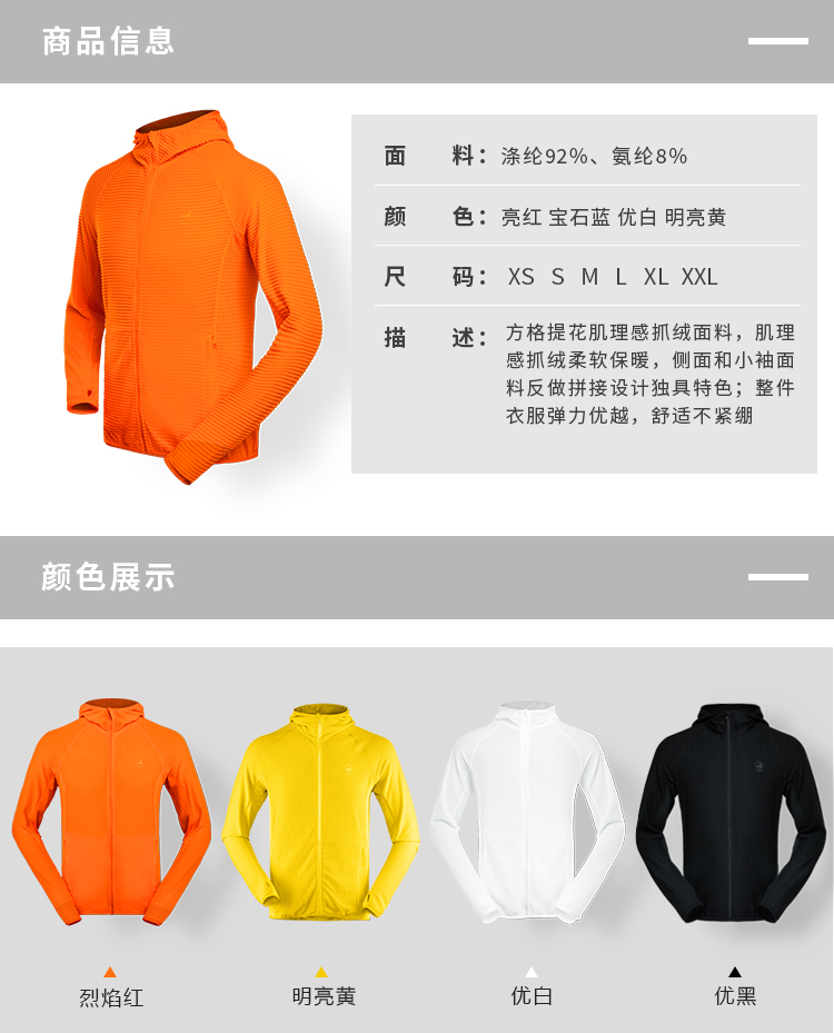 优极UG 男女款轻质抓绒全开拉链连帽开衫