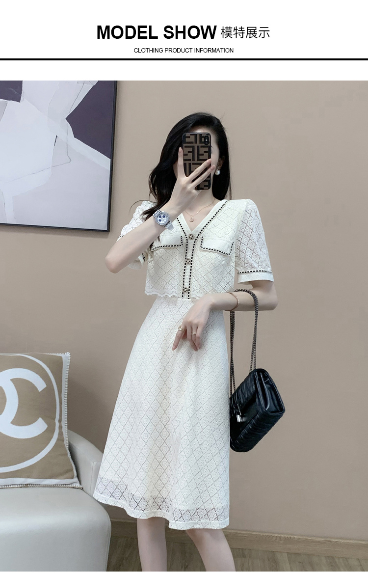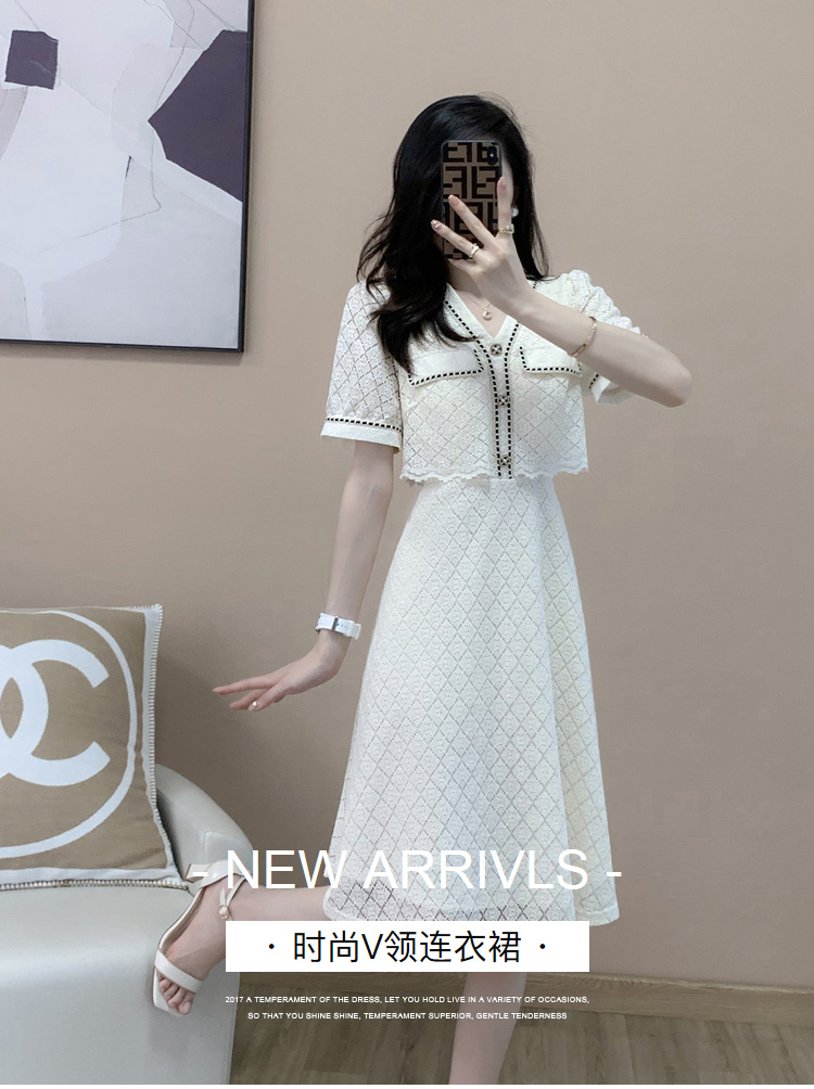 奢姿2023年夏装新款大码女装气质V领连衣裙胖妹妹小香风裙子9922852085