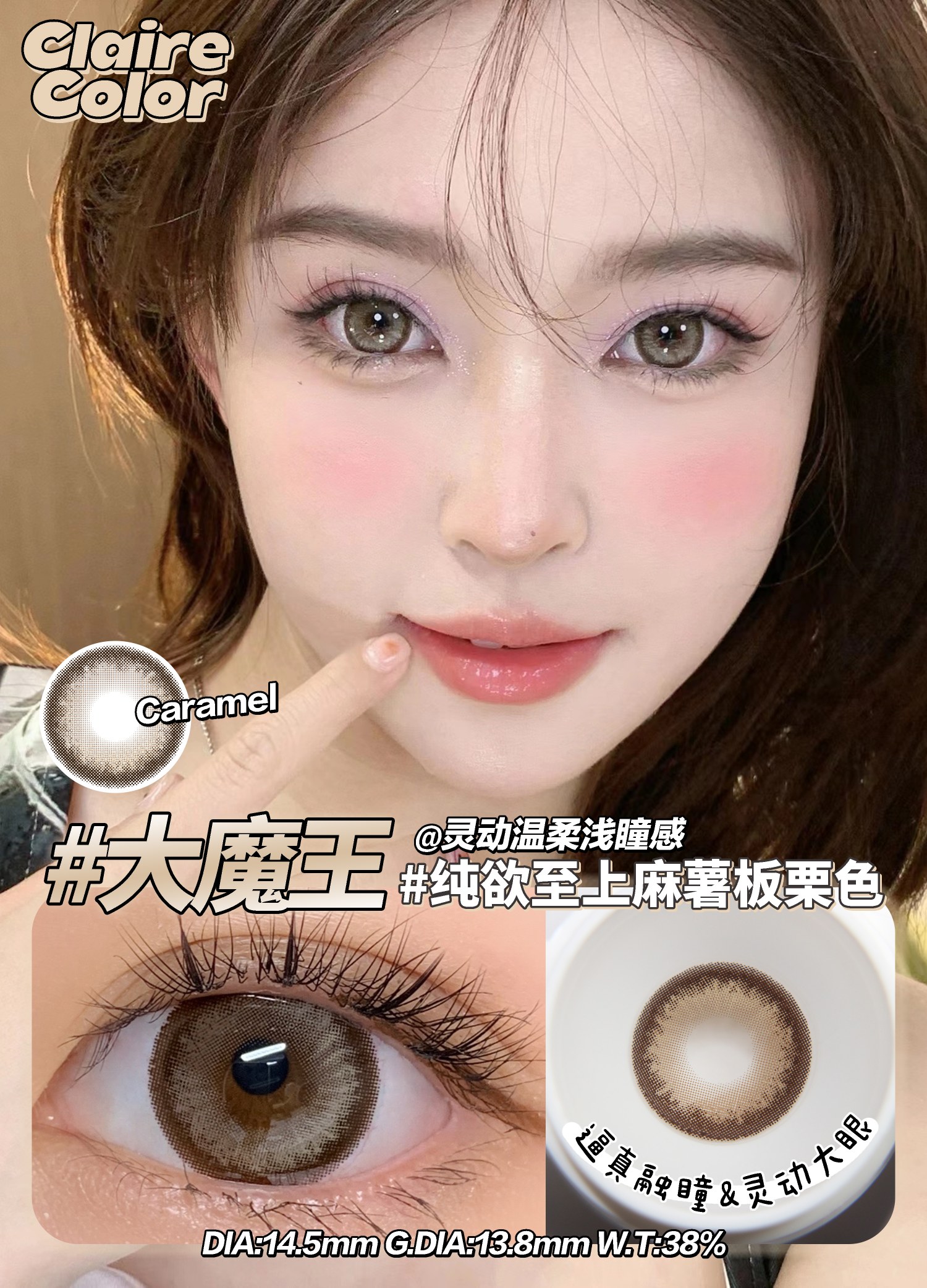 【小红书推荐款】clairecolor,大魔王棕,年抛/直径14.5/着色13.9, 138/一副,268/两副,298/三副 最高度数有1000度