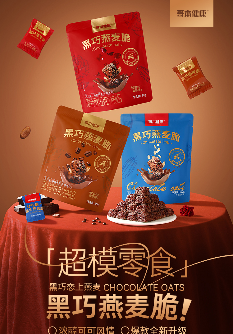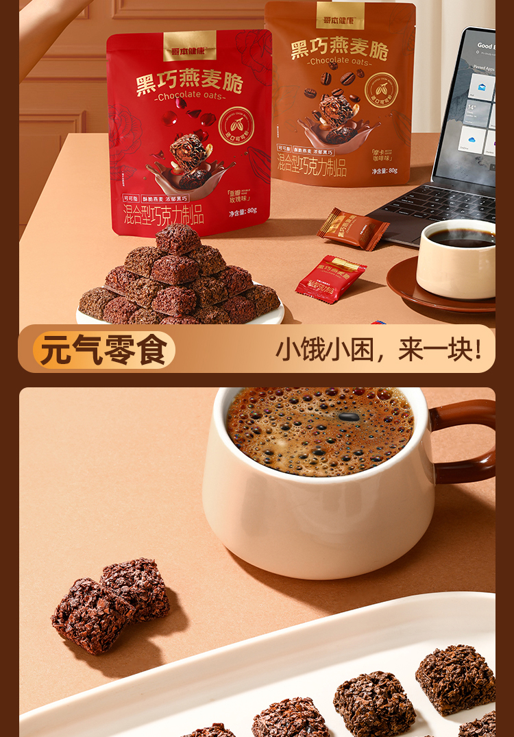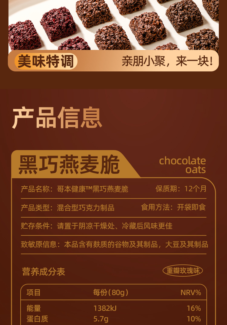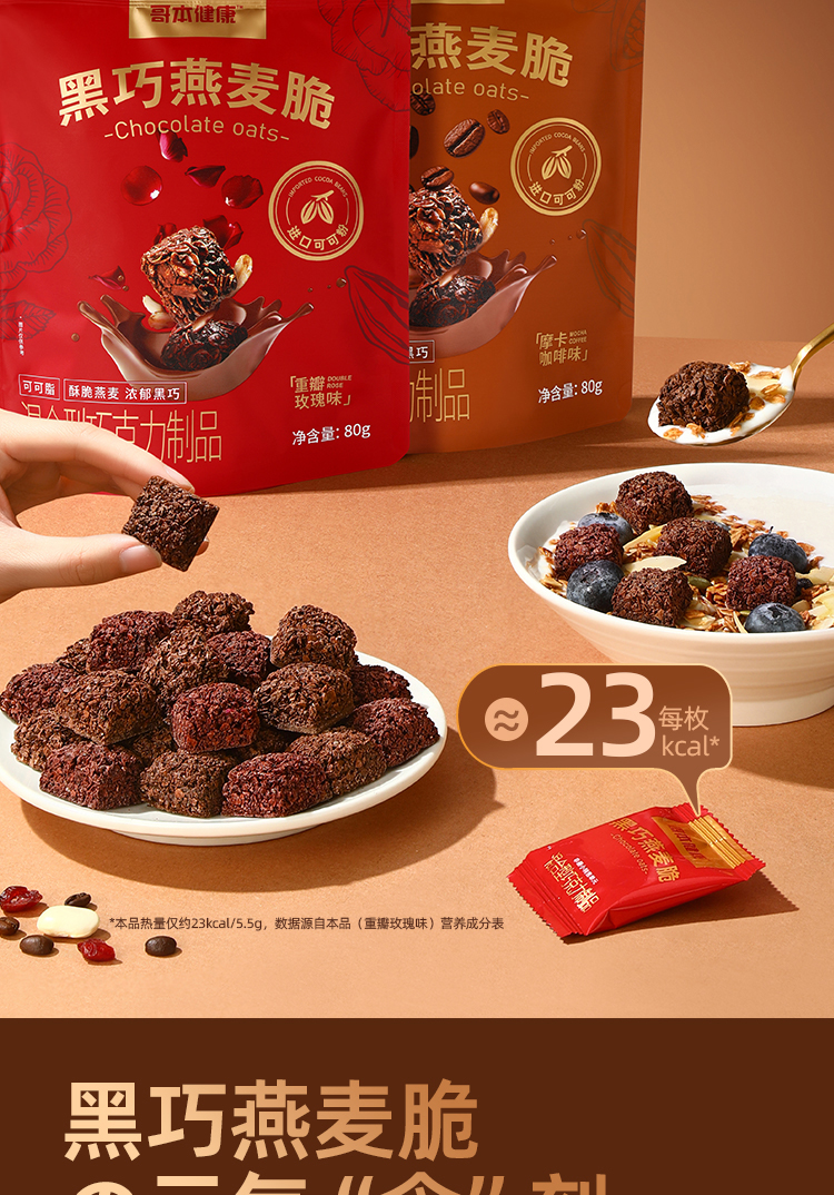 哥本健康【“自律”零食】黑巧燕麦脆 重瓣玫瑰味 纯脂黑巧 浓醇享受 每袋80g 怪兽商城专属