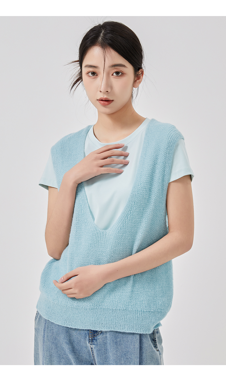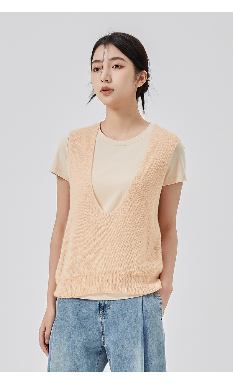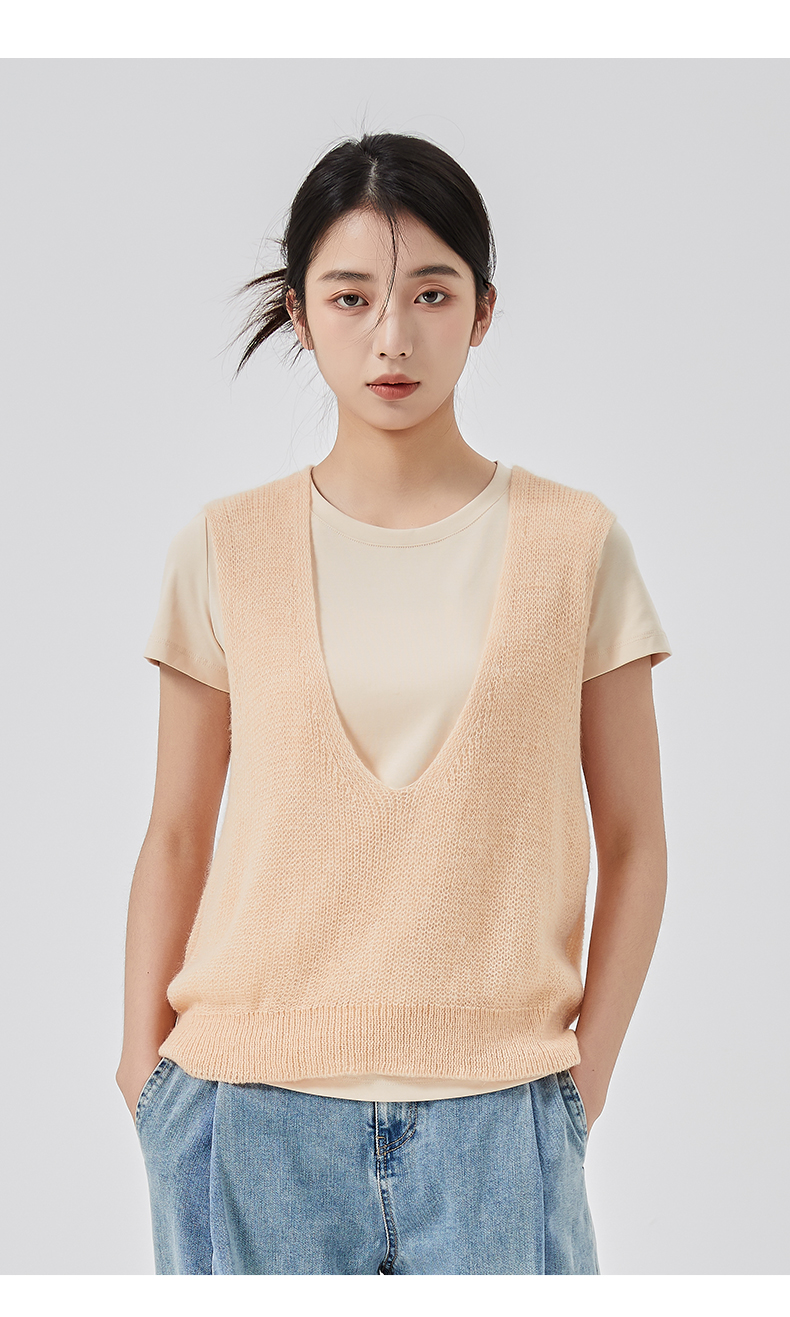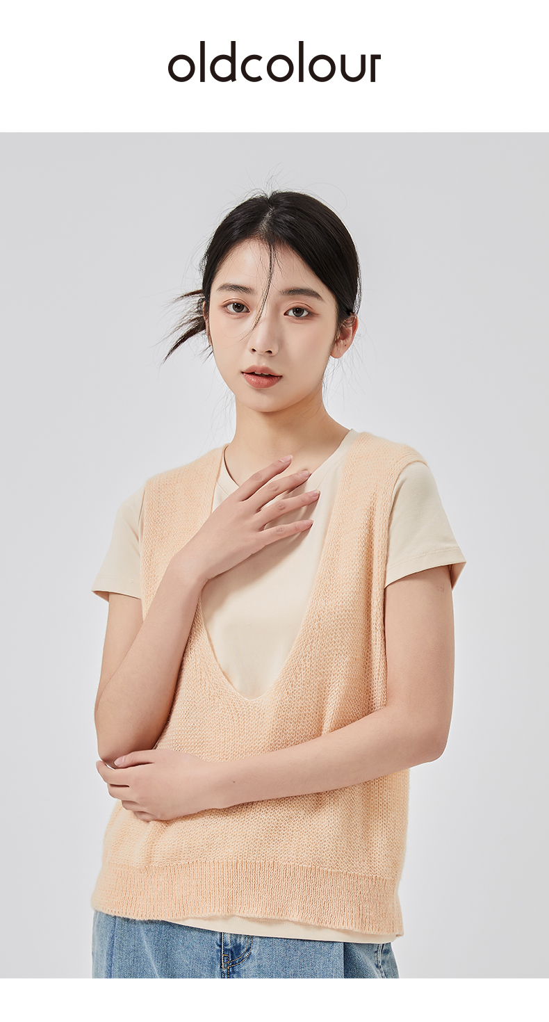 oldcolour2023春新款纯色简约休闲短袖T恤背心两件套女GO11021656
