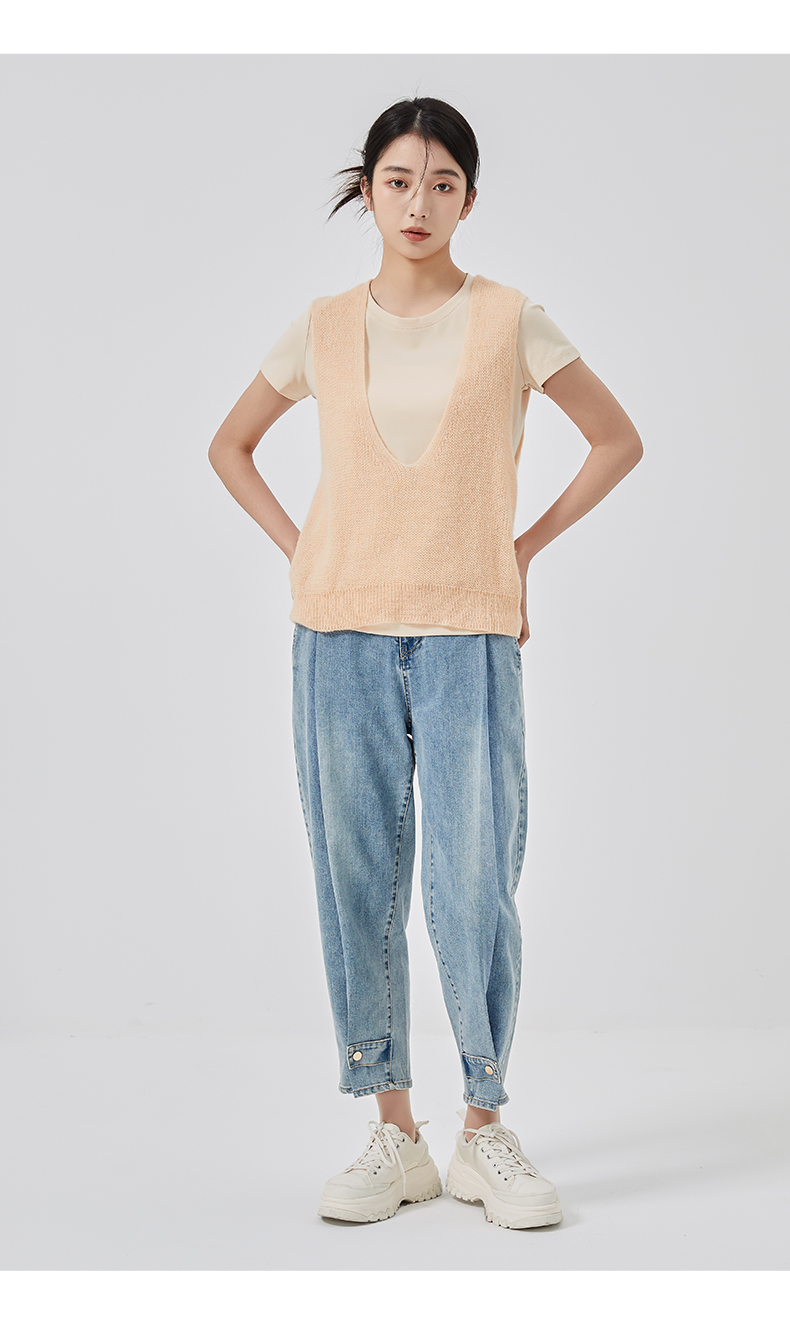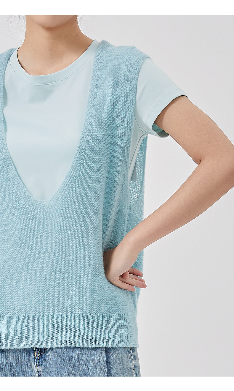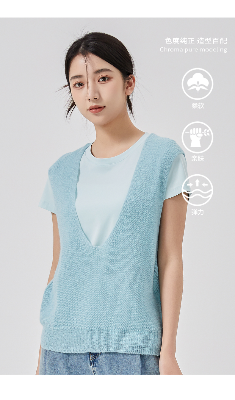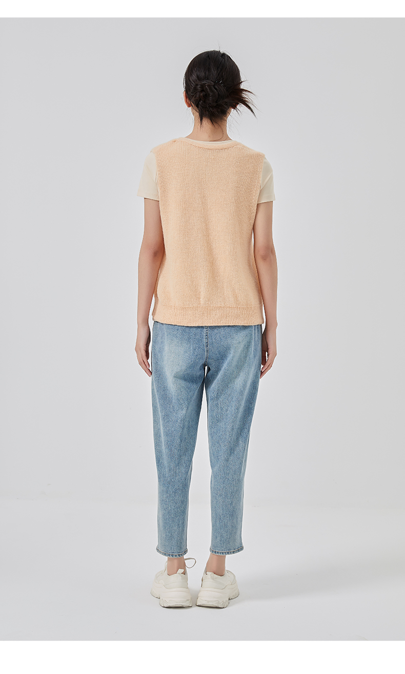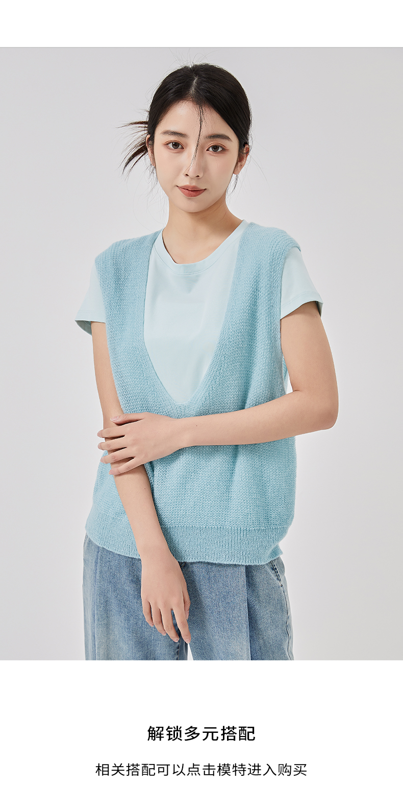 oldcolour2023春新款纯色简约休闲短袖T恤背心两件套女GO11021656