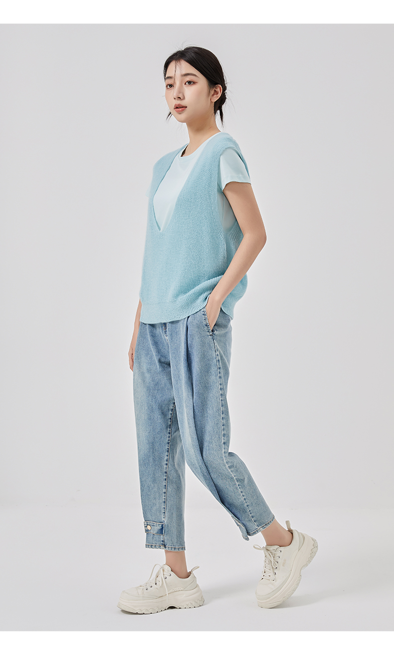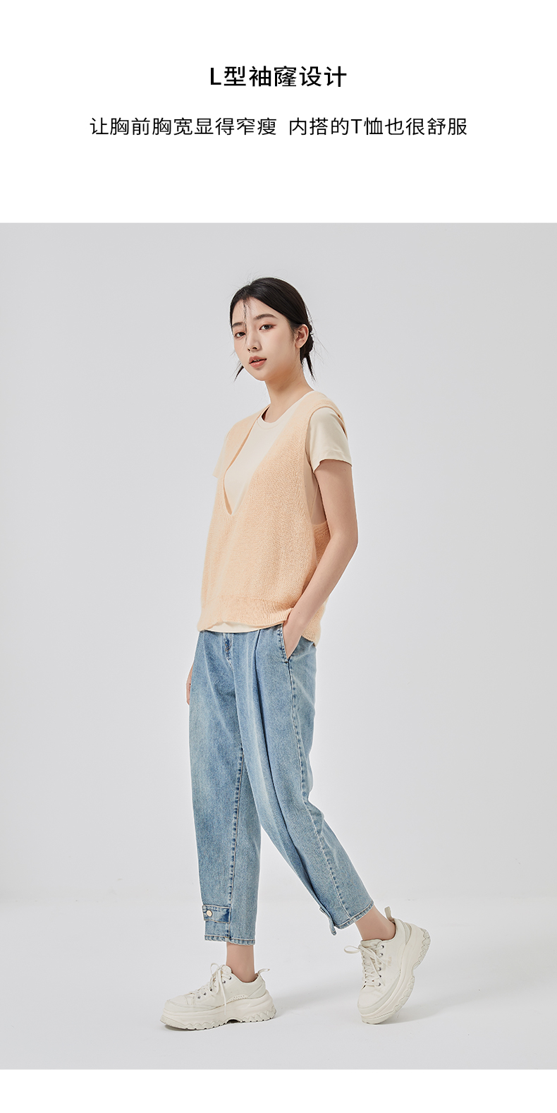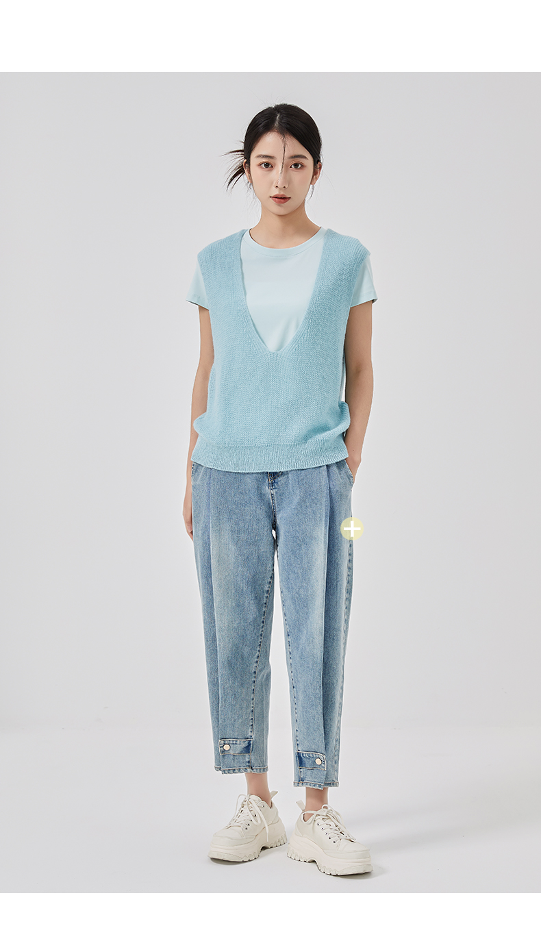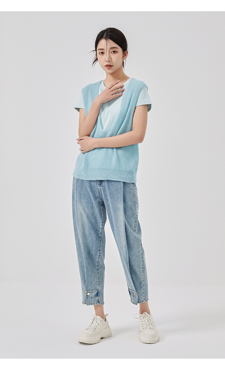 oldcolour2023春新款纯色简约休闲短袖T恤背心两件套女GO11021656
