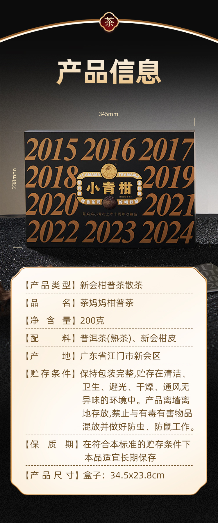 澜沧古茶 茶妈妈小青柑上市10周年纪念套组(2015-2024) vip纪念礼盒装200g/套