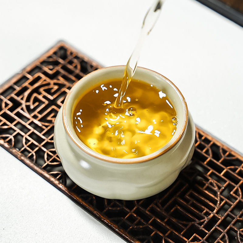 茶汤一入口,你就能清晰感受到它的重量感,汤质凝聚成股,在口腔里聚成一团,滋味浓甜,有一晃而过的清苦,但是你还未细细感知它的存在,它已经消散。浑厚的茶滋味从入口的那刻开始,就在口腔中、喉咙里展开它的侵略性。你的味蕾、口腔、喉咙,是它清楚的存在感,咽下后,茶滋味、茶香能够在口腔中留存超过 20 分钟。
