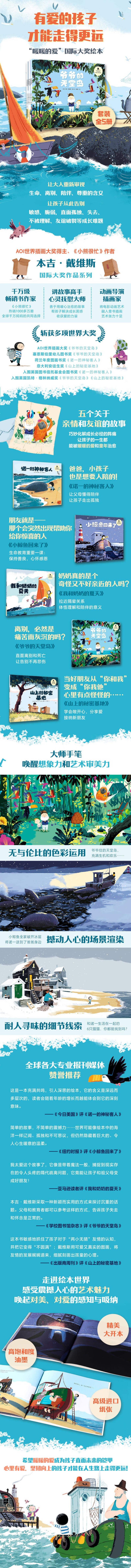 讲述了五个关于亲情和友谊的故事,绘本主题非常有针对性和现实意义:让大人重新审视生命、离别、陪伴、尊重的含义;让孩子告别敏感、脆弱,直面孤独、失去、不被理解、友谊破裂等成长难题,一生被暖暖的爱和童年治愈。