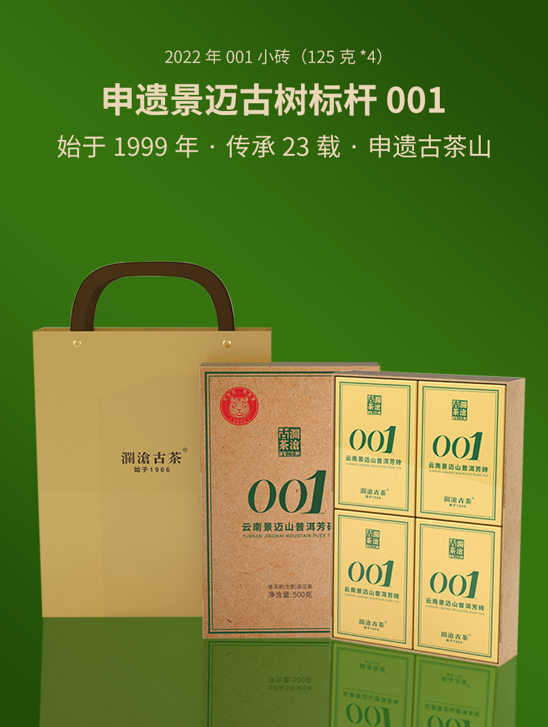 澜沧古茶2022年景迈001芳砖普洱生茶125g/砖(1盒拍4砖)