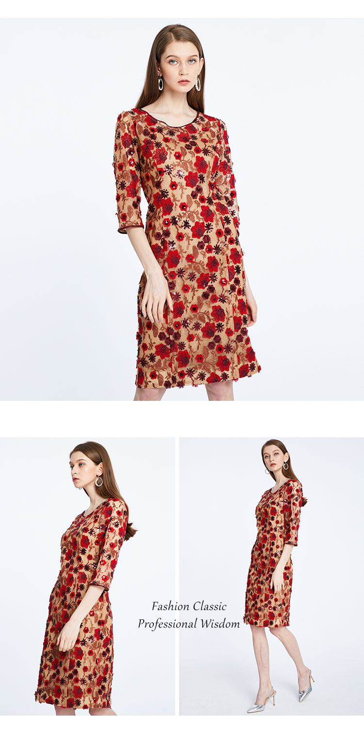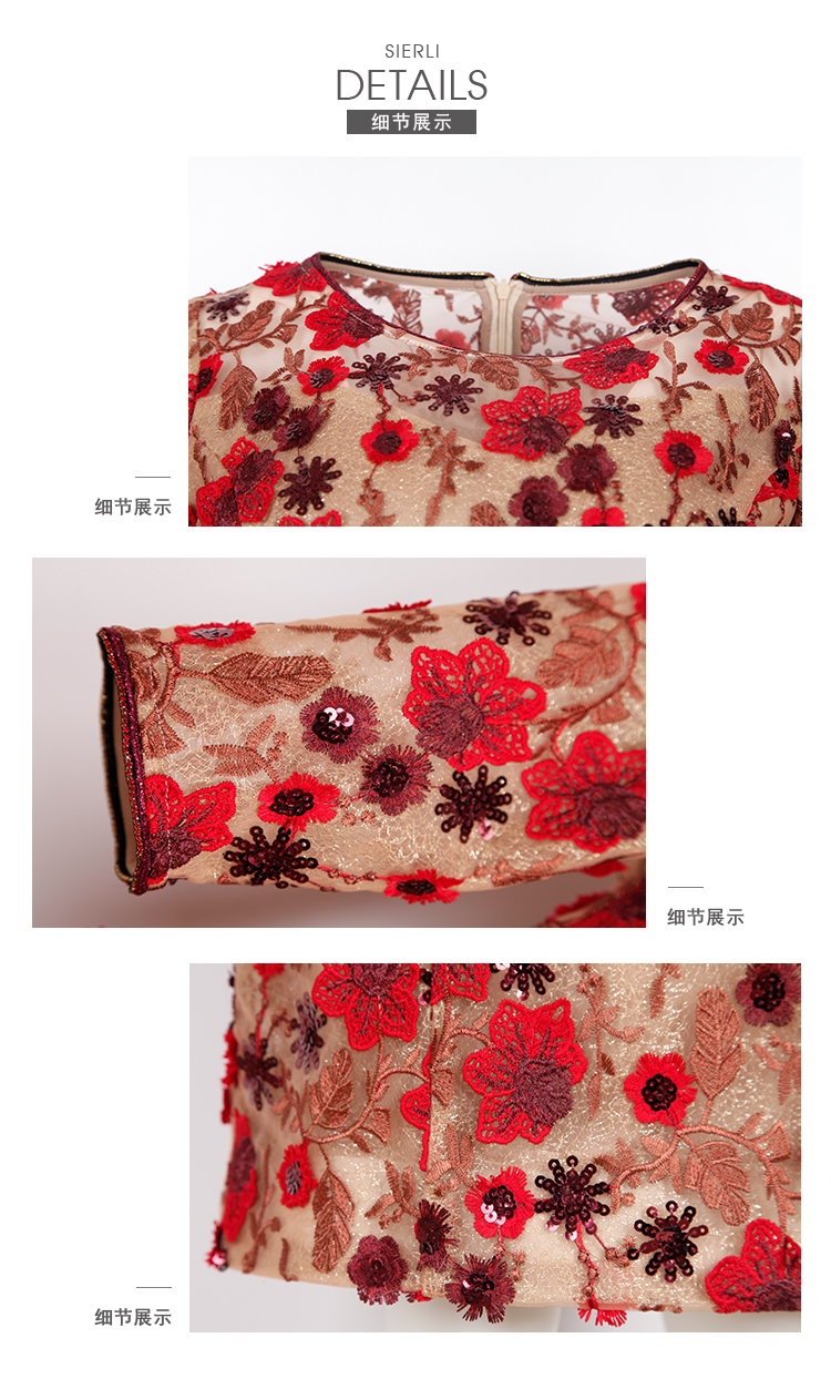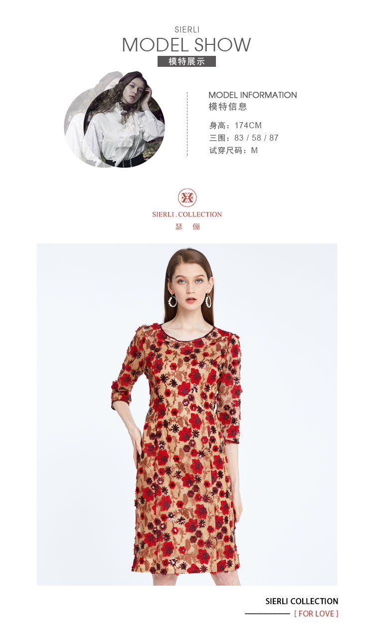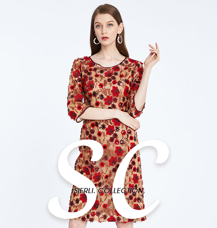 QF84C斯尔丽2021年春季上新瑟俪复古定制绣花淑女合体连衣裙