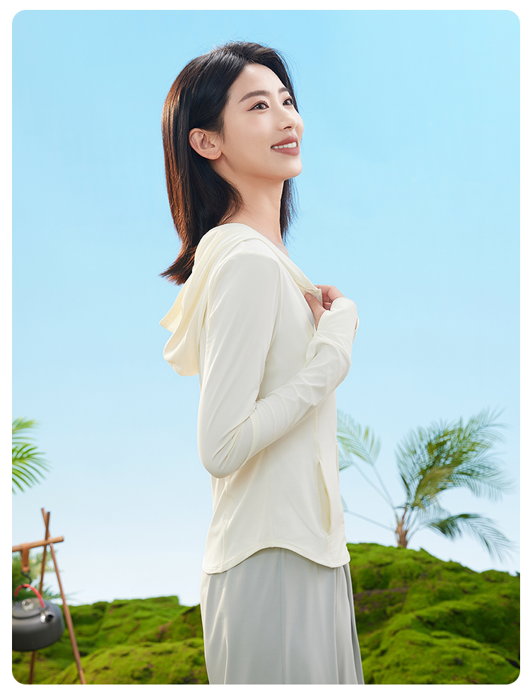 爱帝凉感原纱防晒衣修身显瘦防紫外线大帽檐防晒服