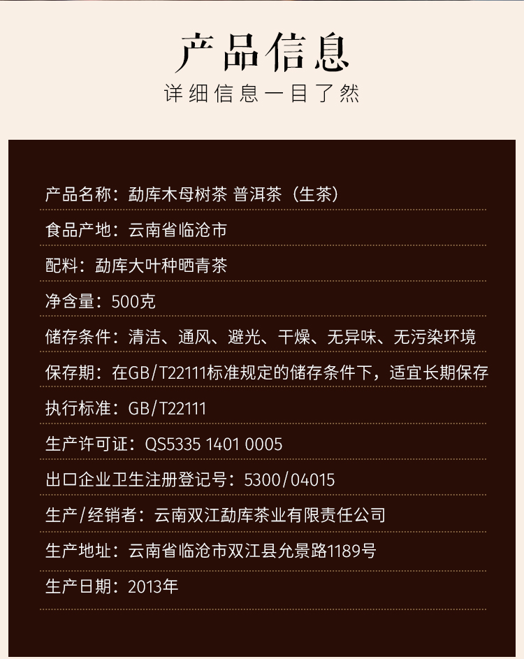 生普 | 勐库戎氏2013年母树茶500G