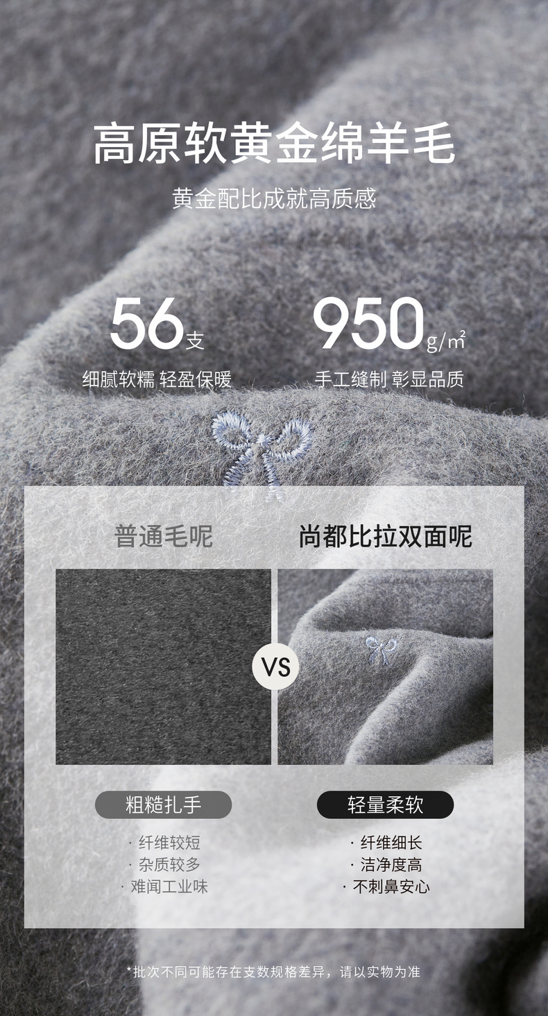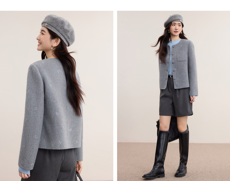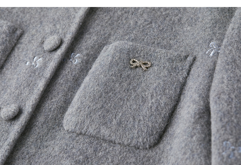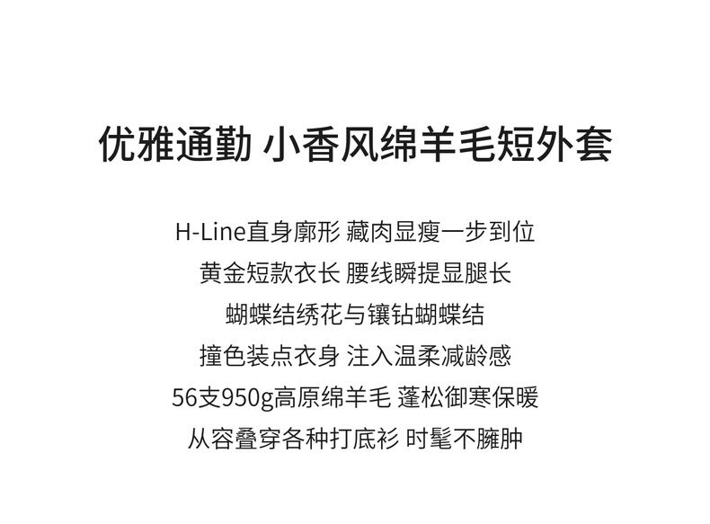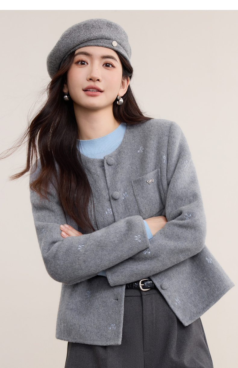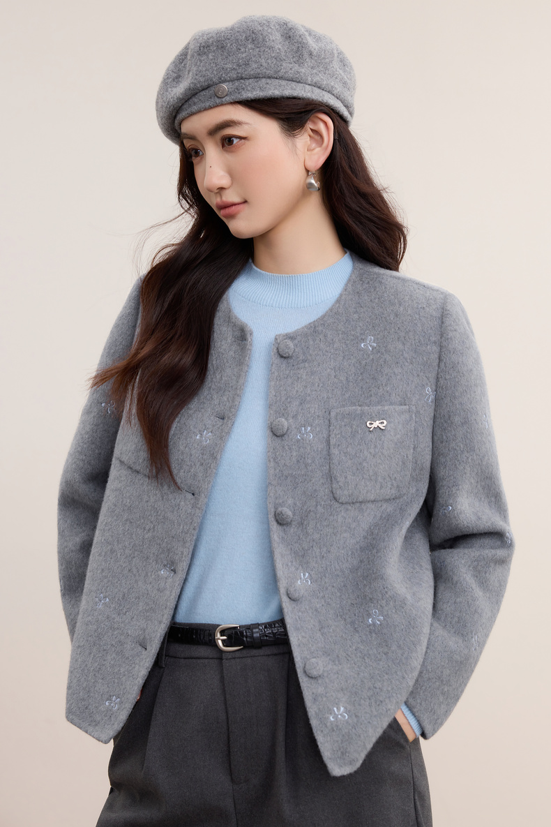 【内购】【56支绵羊毛】小香风通勤圆领包扣蝴蝶结绣花双面呢短款厚外套-W54OE8760